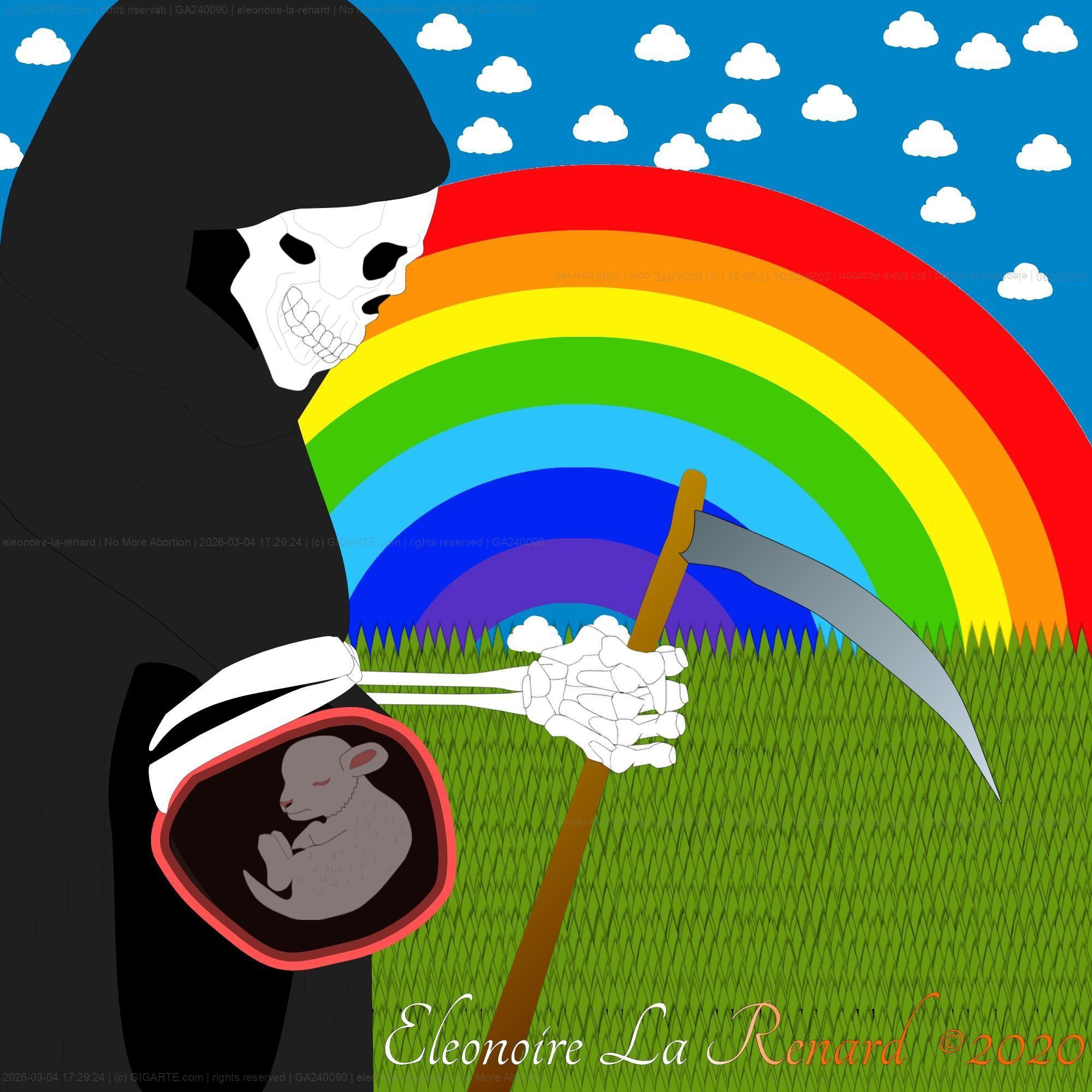 In the center of the frame, a mother sheep stands with a heavy, visible pregnancy. Inside her, the viewer can see the silhouette of a lamb—the universal symbol of innocence.However, this is not a joyful depiction. The lamb appears distressed and uneasy, its posture reflecting a soul that feels the weight of its own uncertain future. It is a being that simply wants to live and belong, mirroring the quiet plea of the defenseless.The background creates a stark contrast to this inner turmoil: * The Rainbow: A vibrant arc of colors stretches across the sky. In this specific context, it is not a political or social symbol, but a representation of pure hope and the "alternative path." * Atmosphere: The setting radiates a sense of "Pure Hope," suggesting that even in difficult circumstances, there is a way forward if one chooses to embrace life.The MessageThe artist’s interpretation focuses on awareness and prevention. The core message is a call to "stop" and consider the reality of life before it begins. It encourages individuals to: * Take Precautions: Use responsibility and care to avoid pregnancies that do not fit your current life context. * Acknowledge Consequences: Understand the profound responsibility of motherhood before becoming a mother. * Choose Life: To see the "Rainbow" as the hope that exists when we take accountability for our vital choices. ?????????????Artist's NoteThis piece is a sensitive exploration of freedom and the "unseen" struggle. It advocates for a world where responsibility precedes creation, ensuring that every "lamb" born into this world is met with the readiness they deserve. ??????????????