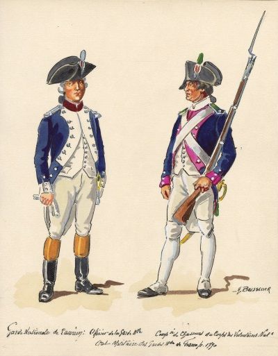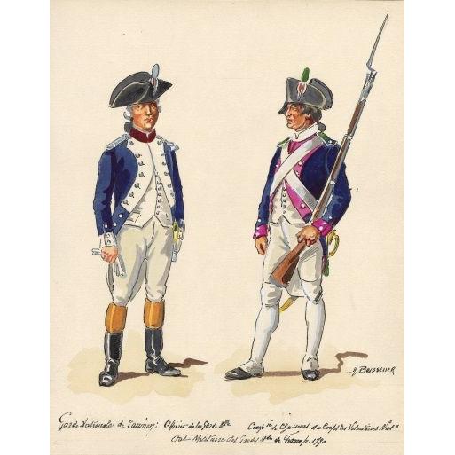 Original illustration Garde Nationale de Paris Officier de la Garde et Chasseur du Corps des Volontaires Nationaux de Jean-Baptiste Lesueur