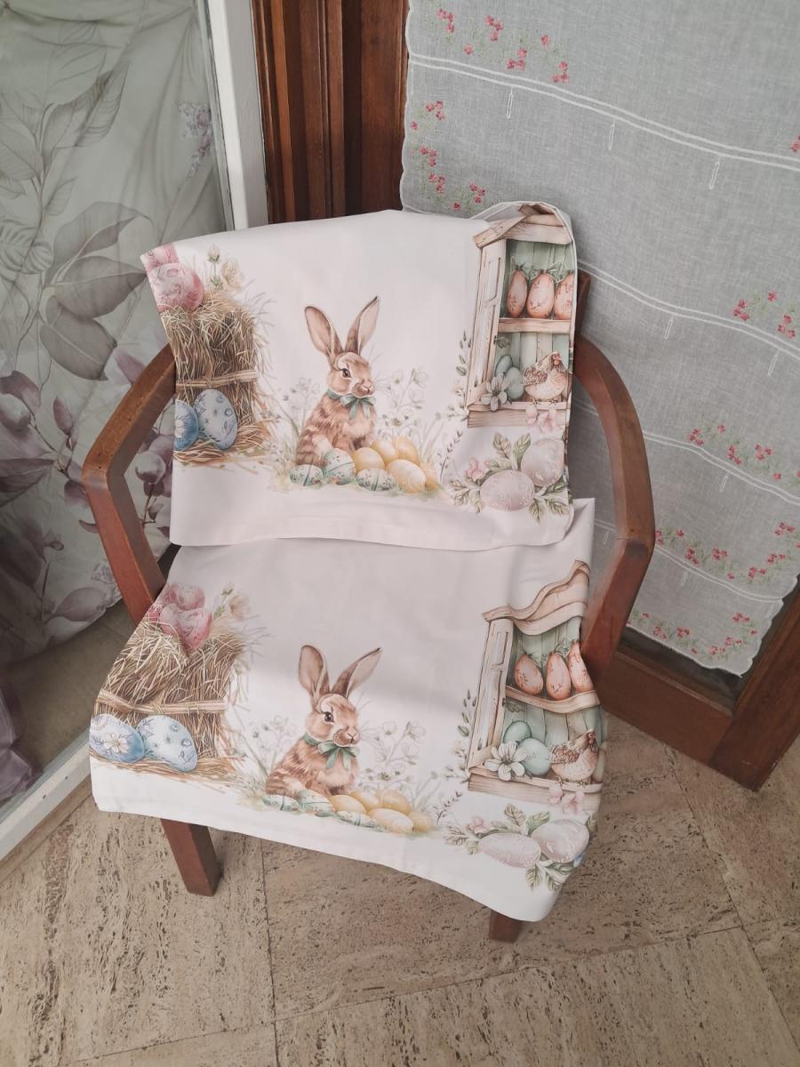 easter themed linen set featuring a watercolor bunny eggs and spring flowers on a cream background?Orange Print Teeoff white t shirt with an all over orange fruit pattern and small green leaves.Personal, non-commercial, non-advertising use only.