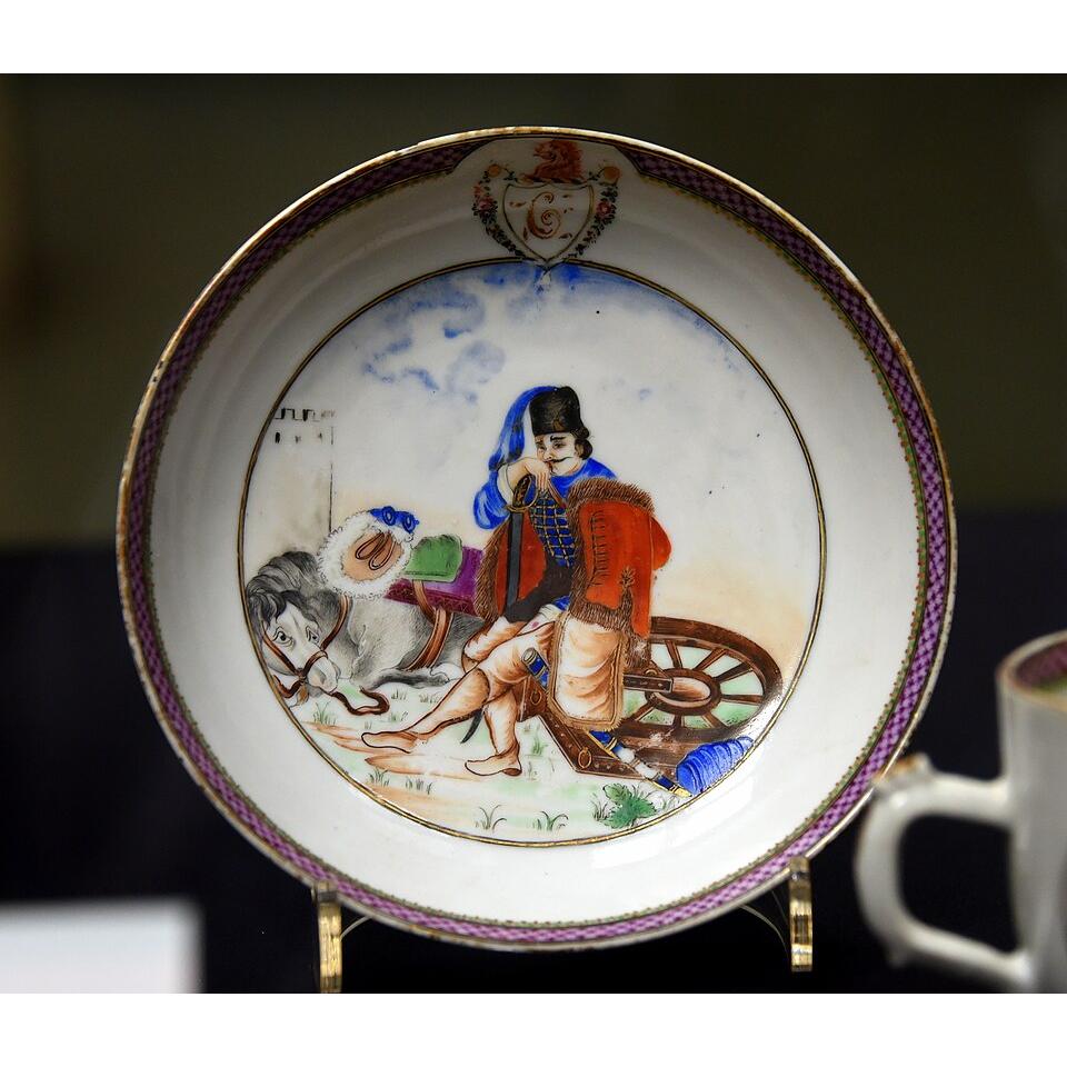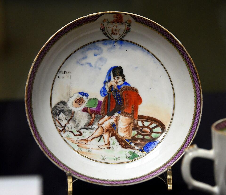 ?Educational Context: The image serves to identify and describe historical porcelain craftsmanship and military iconography.