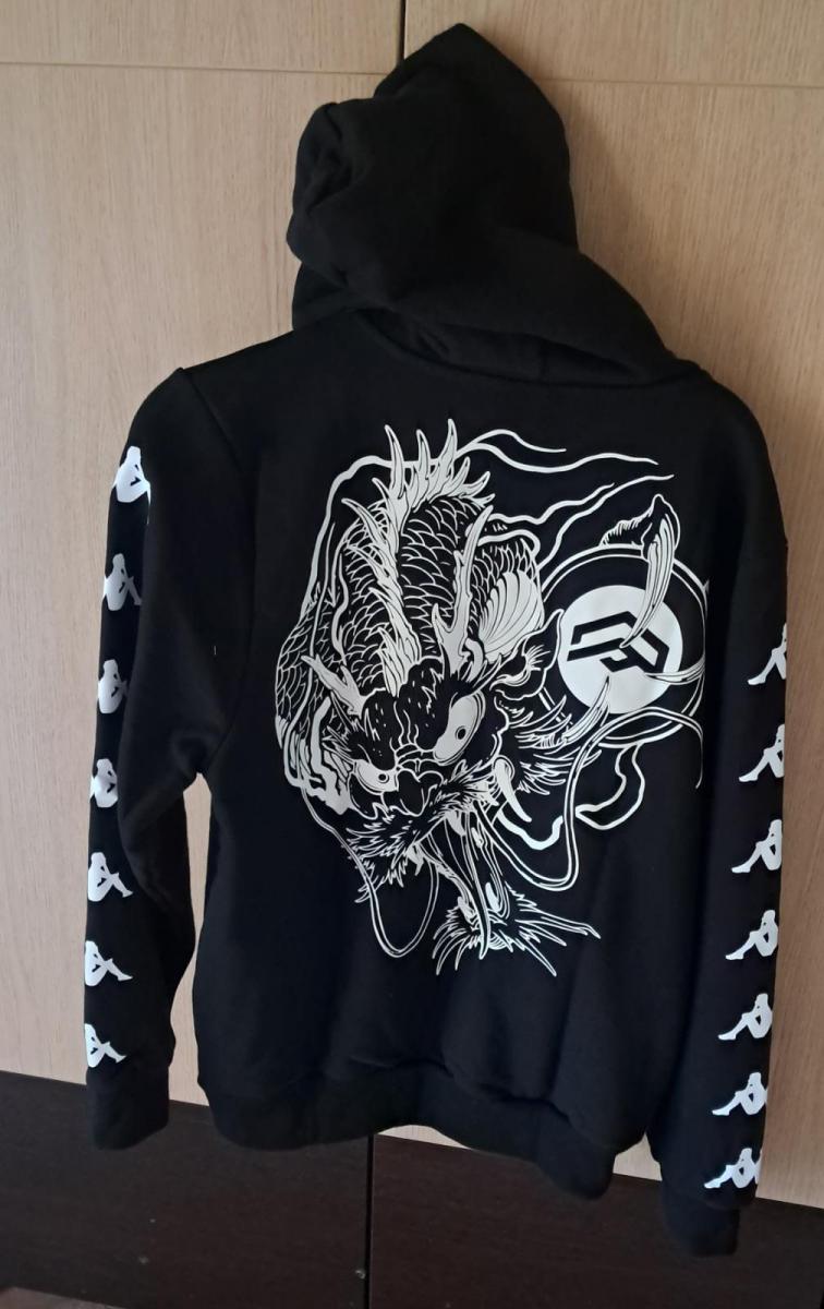 Black Kappa Hoodie Featuring East Asian Dragon Gra