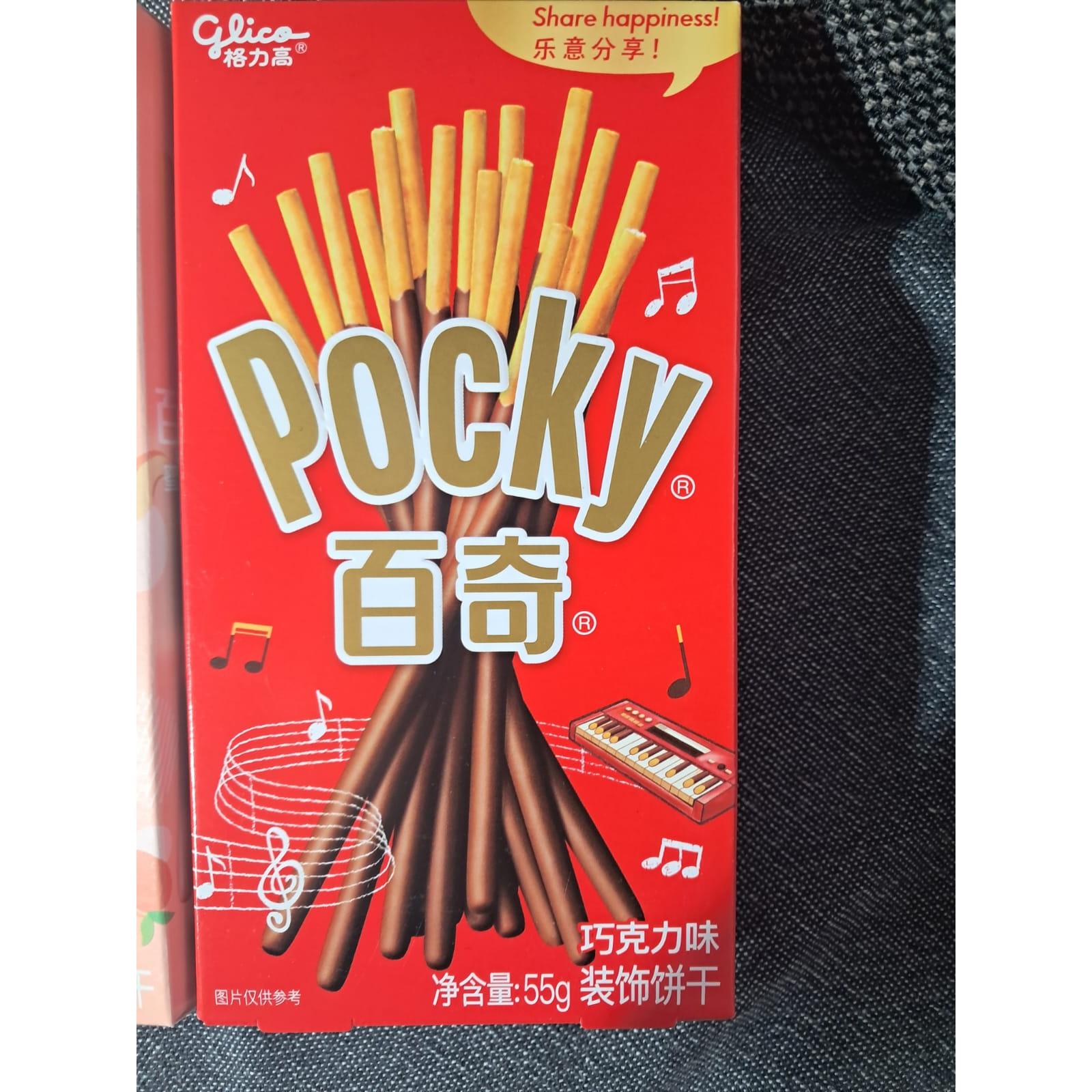 The iconic Japanese snack in a standard 55g package. The biscuit sticks are coated in dark chocolate and presented in the classic red packaging with the ?? (Pocky) branding in Chinese characters.