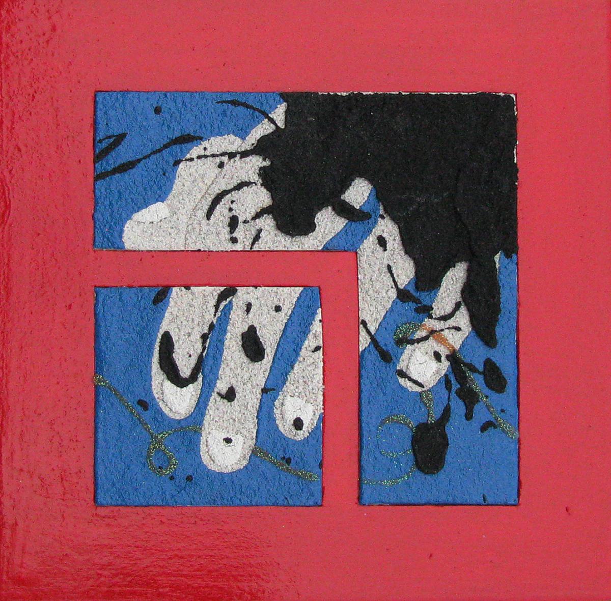 TECNICA MISTA: sabbia, colori a tempera, acrilici, colla vinilica, brillantini, filo di cotone su legno