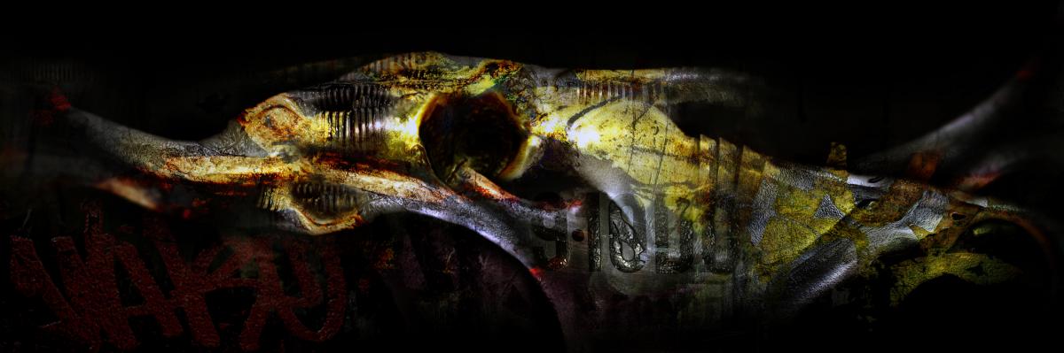 scomposizione e ricomposizione di cranio bovino con inserimento di graffiti