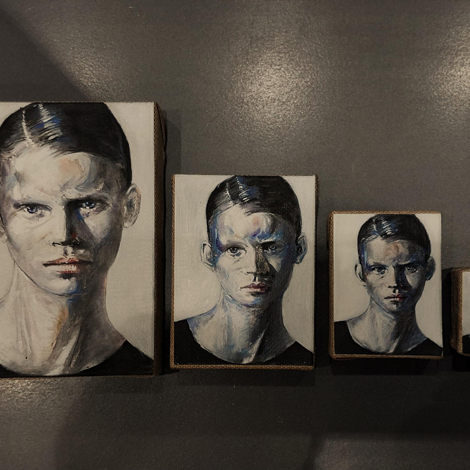 Enzo Casale vive e lavora a Roma. Si laurea all'Accademia di Belle Arti, indirizzo Pittura, poi frequenta l'Accademia di Costume e Moda. Collabora con diversi stilisti e realizza collezioni per industrie di maglieria e confezione. Produce una linea di abbigliamento con il proprio nome e apre una boutique a Fondi. Nel 2003, dopo 20 anni di pausa, torna a tempo pieno ad occuparsi di pittura. I suoi lavori sono ritratti in primo piano, trattenuti a stento all'interno della tela, e reiterati con serialità, esaltando manualità e attitudine gestuale. Lavorando con un soggetto alla volta esclude qualsiasi interpretazione narrativa, pur guardando la realtà informazioni sull'identità del soggetto. Il segno avvolte energico e possente, altre più delicato e morbido, dichiara che il mondo non si divide in maschile e femminile, ma che esiste anche un vasto ventaglio di possibilità di vivere la propria sessualità fuori da queste due sole categorie. I suoi soggetti sono riservati: composti nei propri silenzi. Un'arte declinata nelle immagini esibite e nei racconti sussurrati, nel gesto della pittura e nell'emozione della poesia. È distaccato dall’arte astratta, mentre predilige la figurazione sottoposta a un processo di reinterpretazione, di deformazione, che appartiene alla cultura dell’informale europeo. Nell'allontanarsi da un suo ritratto per poi riavvicinarsi, si perde il senso dell'intero e ci si immerge nell'astratto. Enzo Casale lives and works in Rome. He was graduated from the Fine Art’s Academy, Painting degree course, then attended the Costume and Fashion’s Academy. He collaborates with some designers and creates collections for the knitwear and clothing industries. He produced a brand with his own name and opened a boutique in Fondi. In 2003, after a break of 20 year, he returned full-time to paint. His works are portrayed in the foreground, barely held within the canvas, and repeated with seriality, enhancing manual dexterity and gestural aptitude. Working with one subject at a time excludes any narrative interpretation, while looking at reality information on the identity of the subject. The sign wrapped up energyc and powerfull, others more delicate and soft, declares that the word isn’t divided into masculine and feminine, but there is also a wide range of possibilities to live one's sexuality outside these two categories only. His subjects are reserved: composed in own silences. An art declined in the images exhibited and in whispered stories, in the gesture of painting and in the emotion of poetry. He is detached from abstract art, while he prefers figuration subjected to a reinterpretation’s process, of deformation, which belongs to the European informal’s culture. As you move away from an his portrait and then draw closer, you lose the sense of the whole and dive into the abstract.