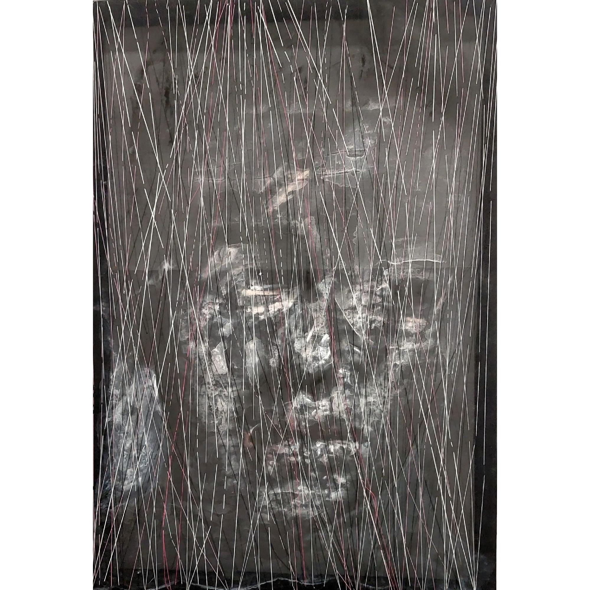 Olio e ricamo su chiffon, chiffon, 2023