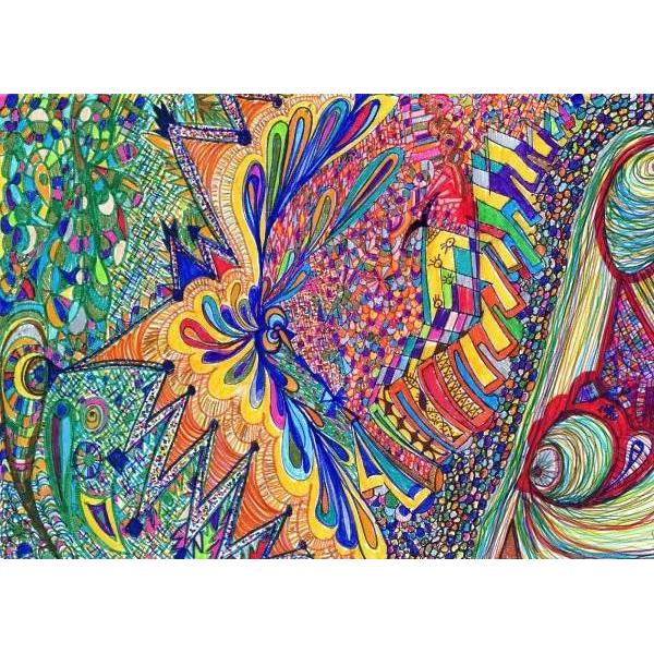 Disegno realizzato a mano libera in acrilico su carta fotografica, Opera appartenente a una sequenza temporale (mese/anno) che segue l'evoluzione del percorso creativo nel tempo. Pezzo unico. Ogni opera nasce senza uno schema fisso, lasciando spazio all'interpretazione personale.