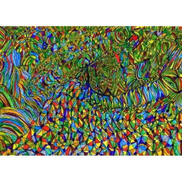 Disegno realizzato a mano libera in acrilico su carta fotografica, Opera appartenente a una sequenza temporale (mese/anno) che segue l'evoluzione del percorso creativo nel tempo. Pezzo unico. Ogni opera nasce senza uno schema fisso, lasciando spazio all'interpretazione personale.