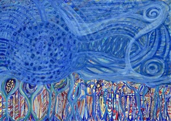 Disegno realizzato a mano libera in acrilico su carta fotografica, Opera appartenente a una sequenza temporale (mese/anno) che segue l'evoluzione del percorso creativo nel tempo. Pezzo unico. Ogni opera nasce senza uno schema fisso, lasciando spazio all'interpretazione personale.