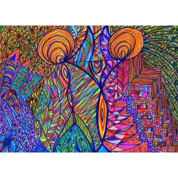 Disegno realizzato a mano libera in acrilico su carta fotografica, Opera appartenente a una sequenza temporale (mese/anno) che segue l'evoluzione del percorso creativo nel tempo. Pezzo unico. Ogni opera nasce senza uno schema fisso, lasciando spazio all'interpretazione personale.
