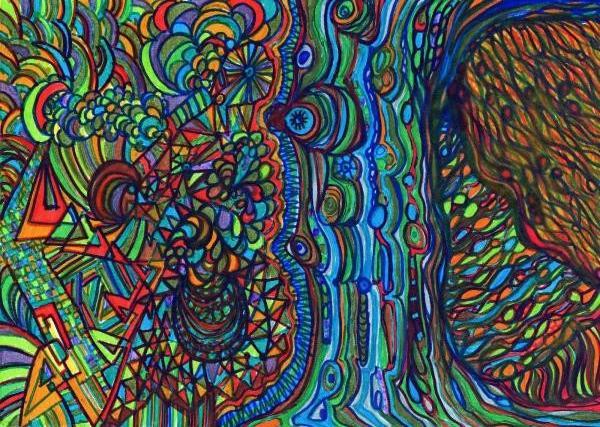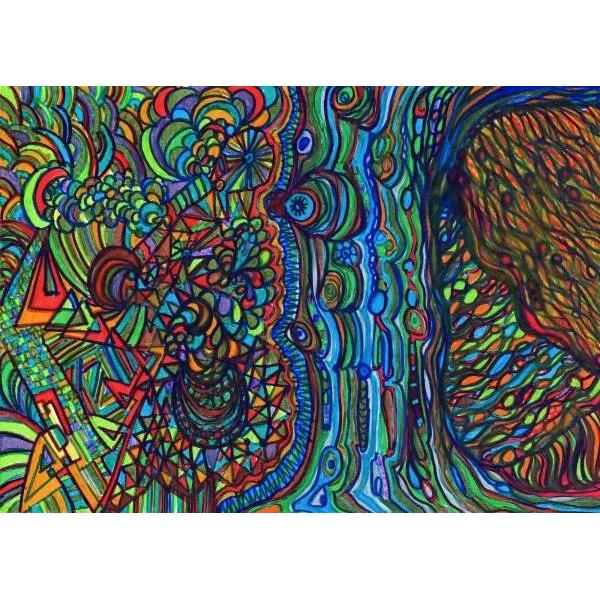 Disegno realizzato a mano libera in acrilico su carta fotografica, Opera appartenente a una sequenza temporale (mese/anno) che segue l'evoluzione del percorso creativo nel tempo. Pezzo unico. Ogni opera nasce senza uno schema fisso, lasciando spazio all'interpretazione personale.