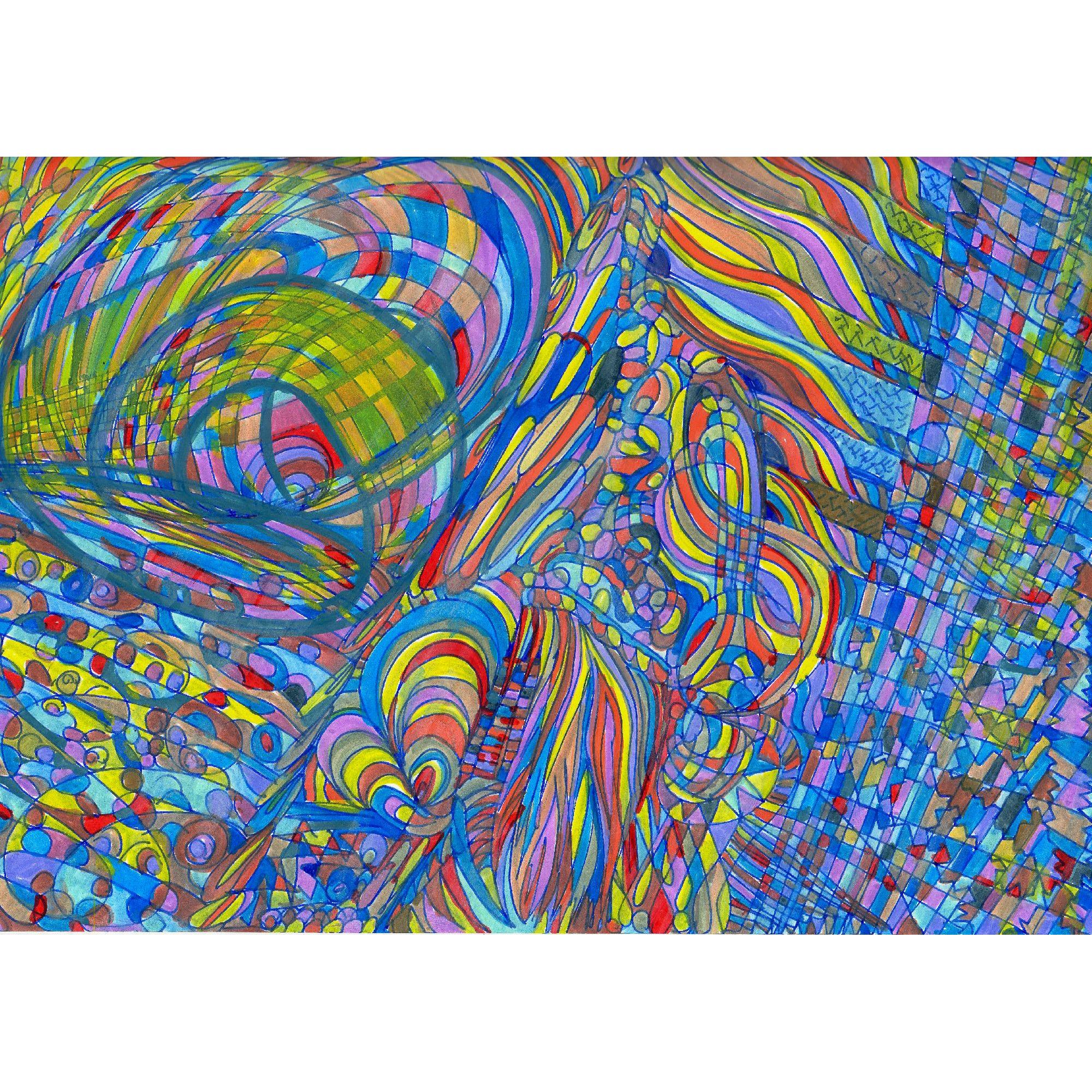 Disegno realizzato a mano libera in acrilico su carta fotografica, Opera appartenente a una sequenza temporale (mese/anno) che segue l'evoluzione del percorso creativo nel tempo. Pezzo unico. Ogni opera nasce senza uno schema fisso, lasciando spazio all'interpretazione personale.