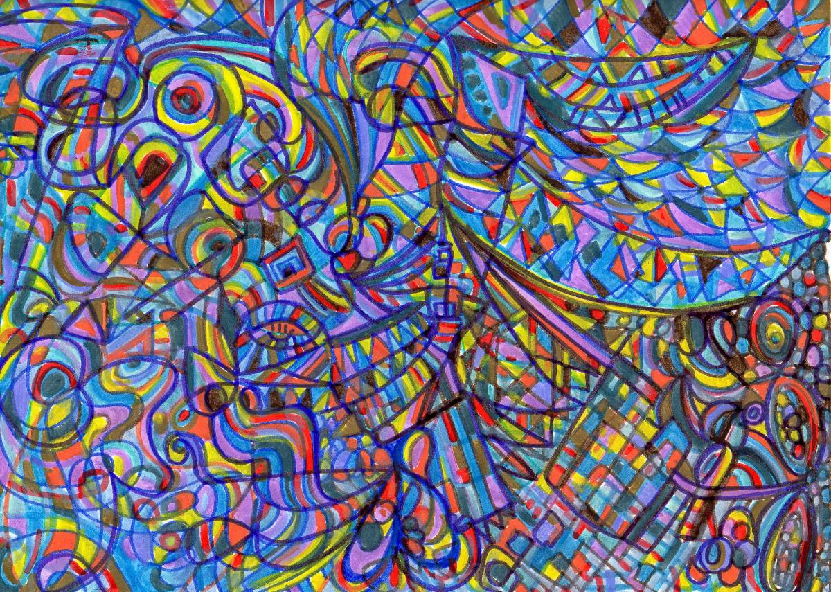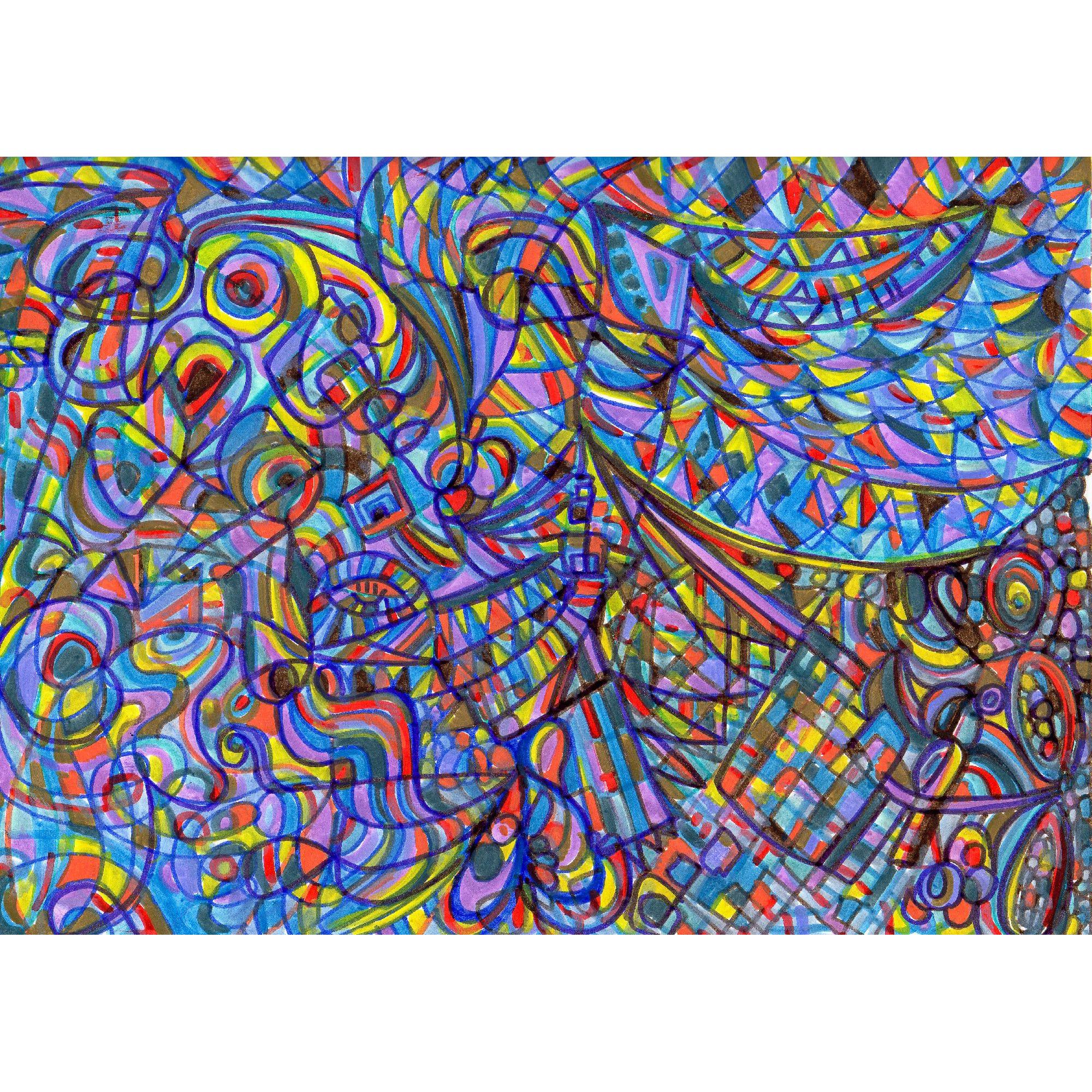 Disegno realizzato a mano libera in acrilico su carta fotografica, Opera appartenente a una sequenza temporale (mese/anno) che segue l'evoluzione del percorso creativo nel tempo. Pezzo unico. Ogni opera nasce senza uno schema fisso, lasciando spazio all'interpretazione personale.