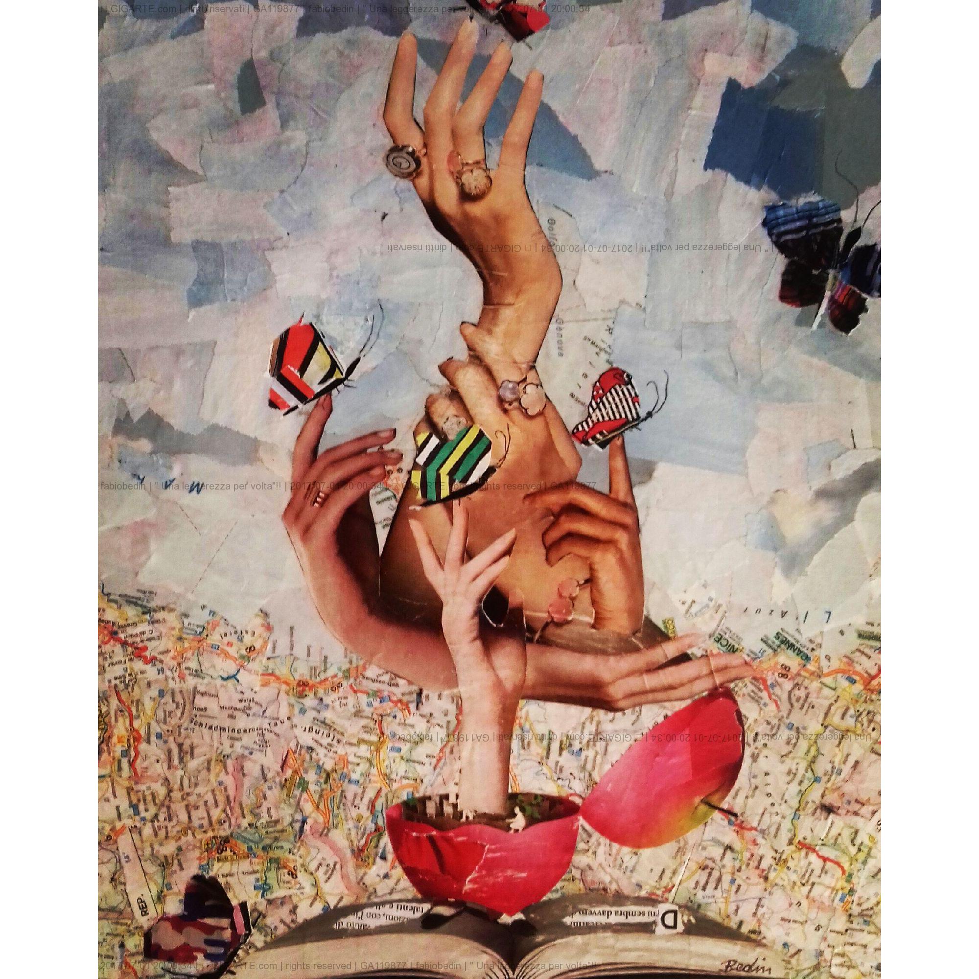 L'opera, surreale nella sua composizione, rappresenta l'importanza del linguaggio espresso dalle mani ,strumento che ogni individuo in molti casi associa alla comunicazione verbale, ma che nell'opera diventa solo comunicazione visiva,indicandoci di rivolgere il nostro sguardo verso la delicatezza ,la bellezza ,la leggerezza espressa dalle farfalle. Prendere la vita con più leggerezza diventa un concetto fondamentale per riuscire a comprenderne il significato.