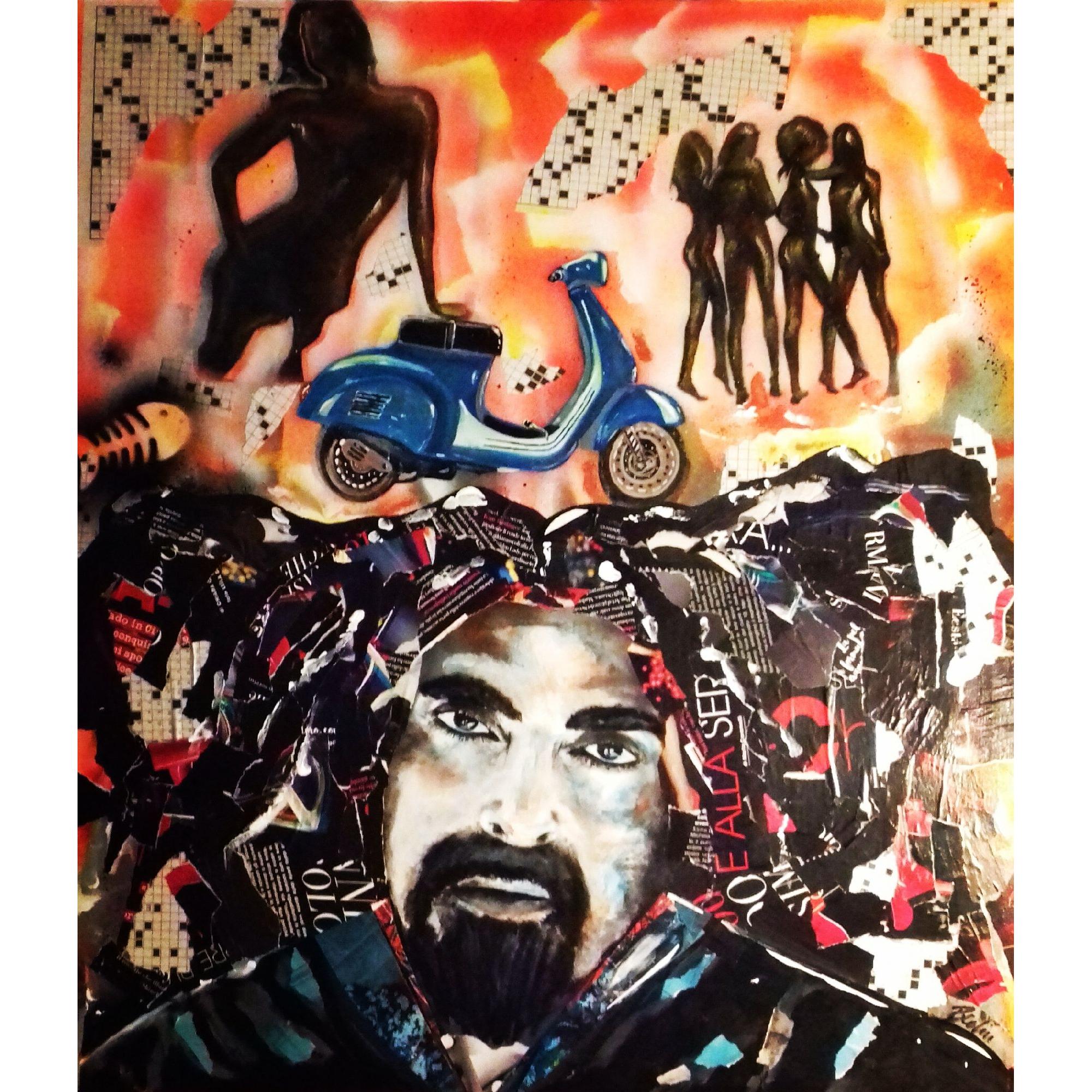 Donne e motori sgorgano dalla testa di Medusa come riccioli neri simili a fiumi di lettere che trasformano e interpretano il pensiero dando voce alle parole. Grattacapi quotidiani intinti di rebus consumistici plasmati da una nebbia irreale che trascina con sé pulsioni specchio di preoccupazioni, desideri e intenti viscerali in cui l'istinto bestiale dell'uomo apparentemente riposa.