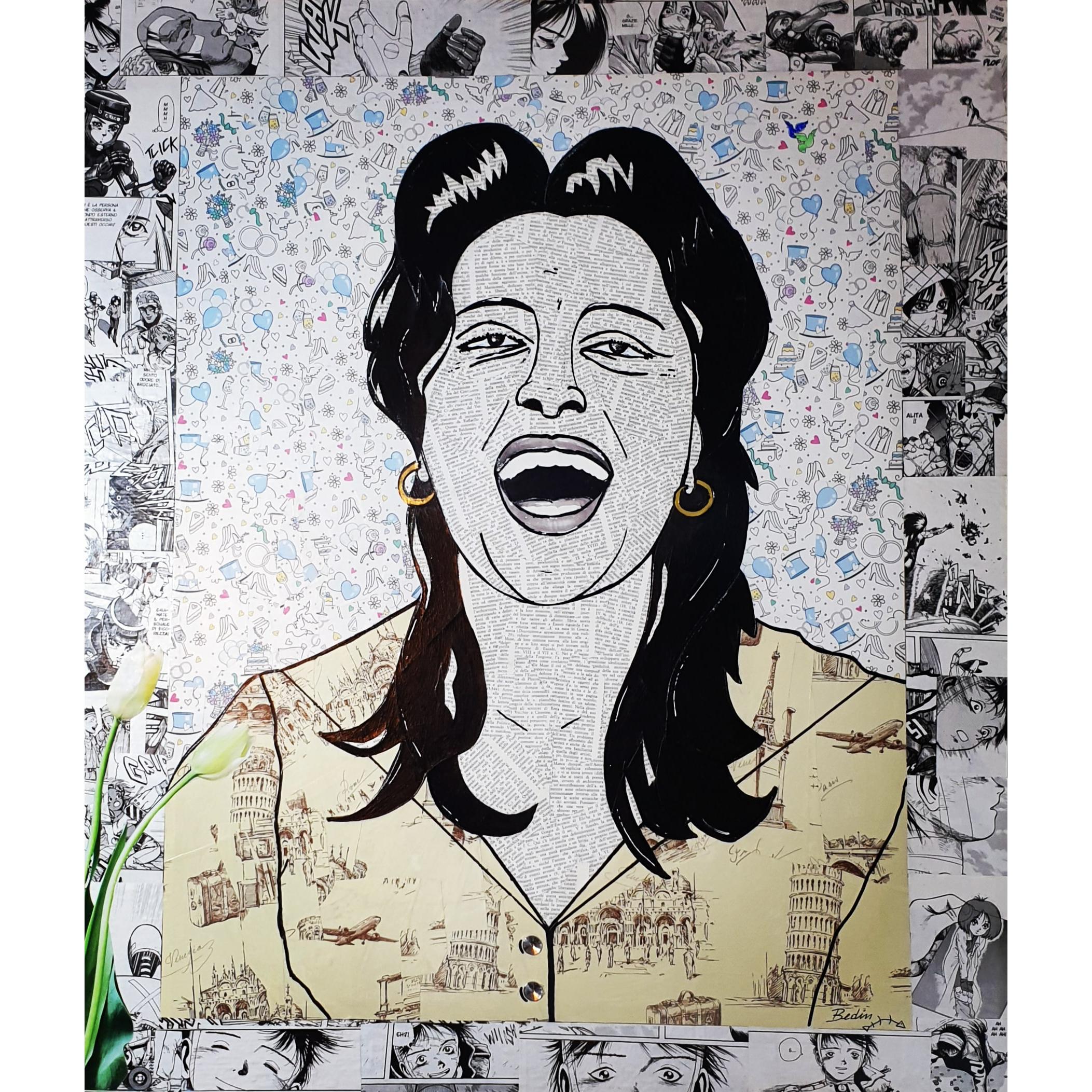 L'opera e' eseguita con la tecnica del collage,formata da piccoli pezzi di carta.