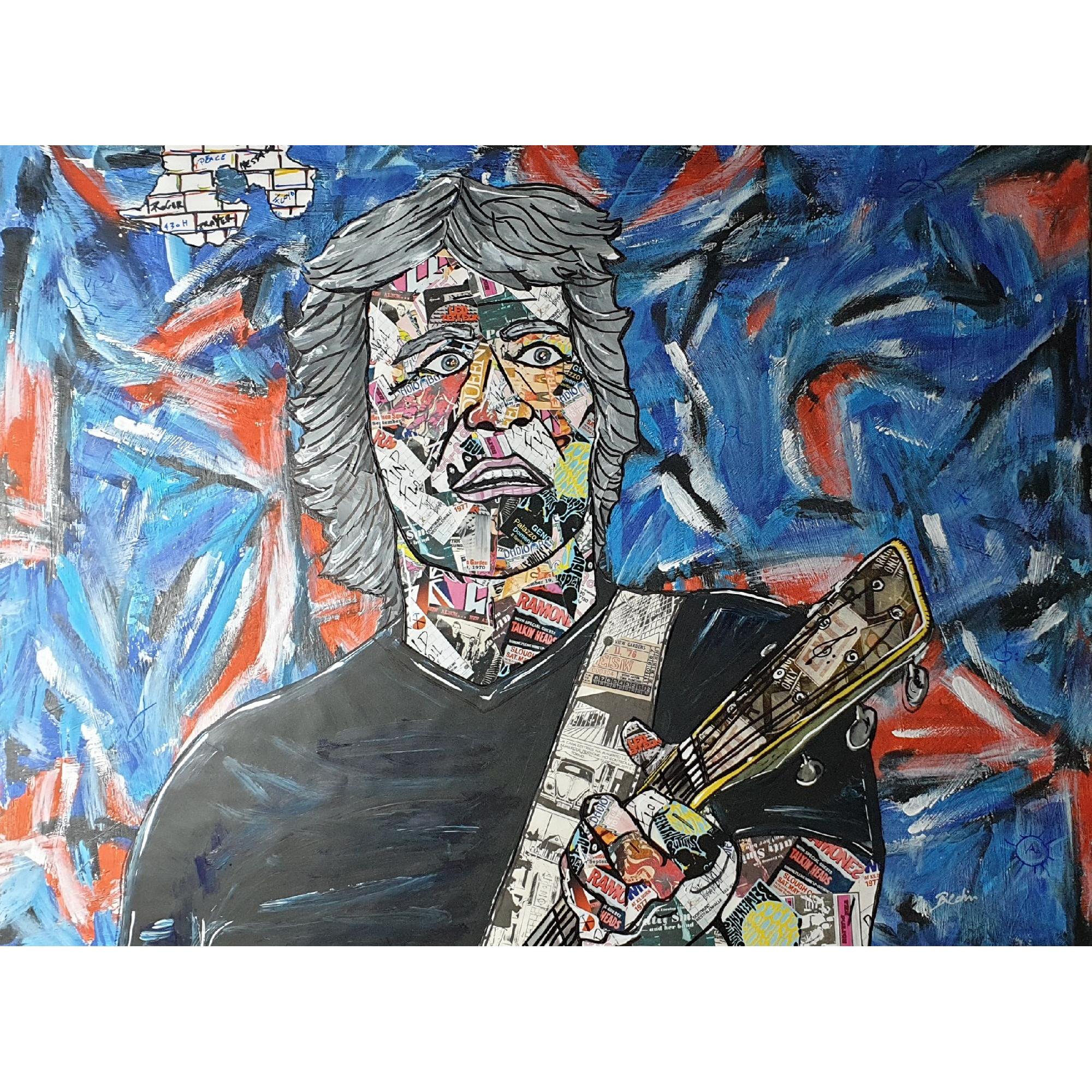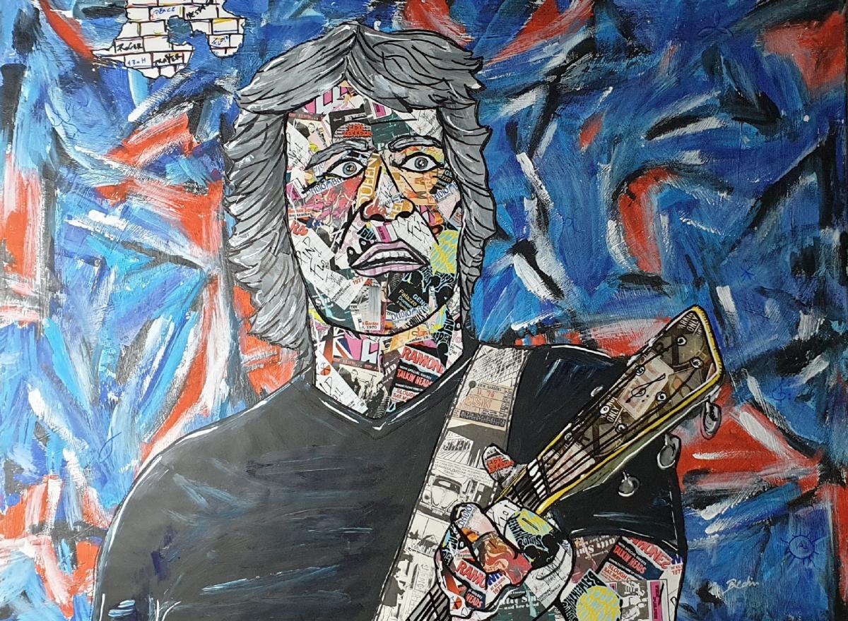 L'opera dal titolo: "Oltre il blu", e' un omaggio al musicista Roger Waters che ha segnato e ancora rappresenta ,la storia della musica rock/pop ,come linguaggio e veicolo di protesta contro ogni sorta di ingiudtizia esaltando la liberta' di espressione e di pacifica convivenza tra i popoli.