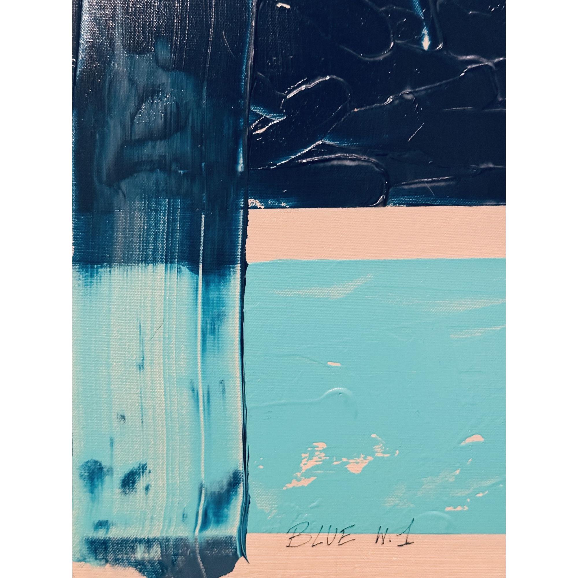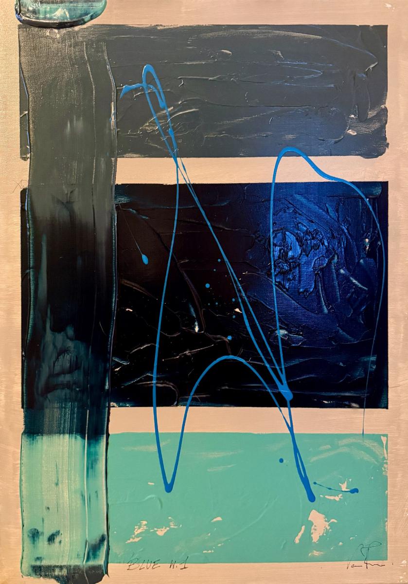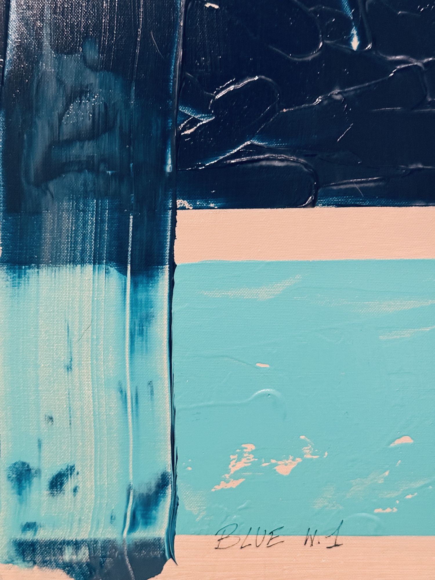"Blue N.1" è un'opera che mette in scena il conflitto e la coesistenza tra struttura e libertà, tra quiete e turbolenza. Il blu, protagonista assoluto, diventa veicolo di introspezione e profondità emotiva. Un lavoro che non racconta, ma evoca, e per questo resta aperto all’interpretazione personale di chi lo osserva.