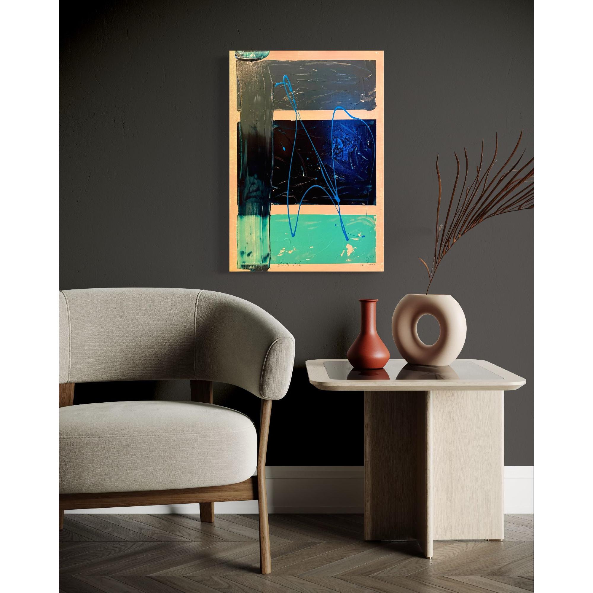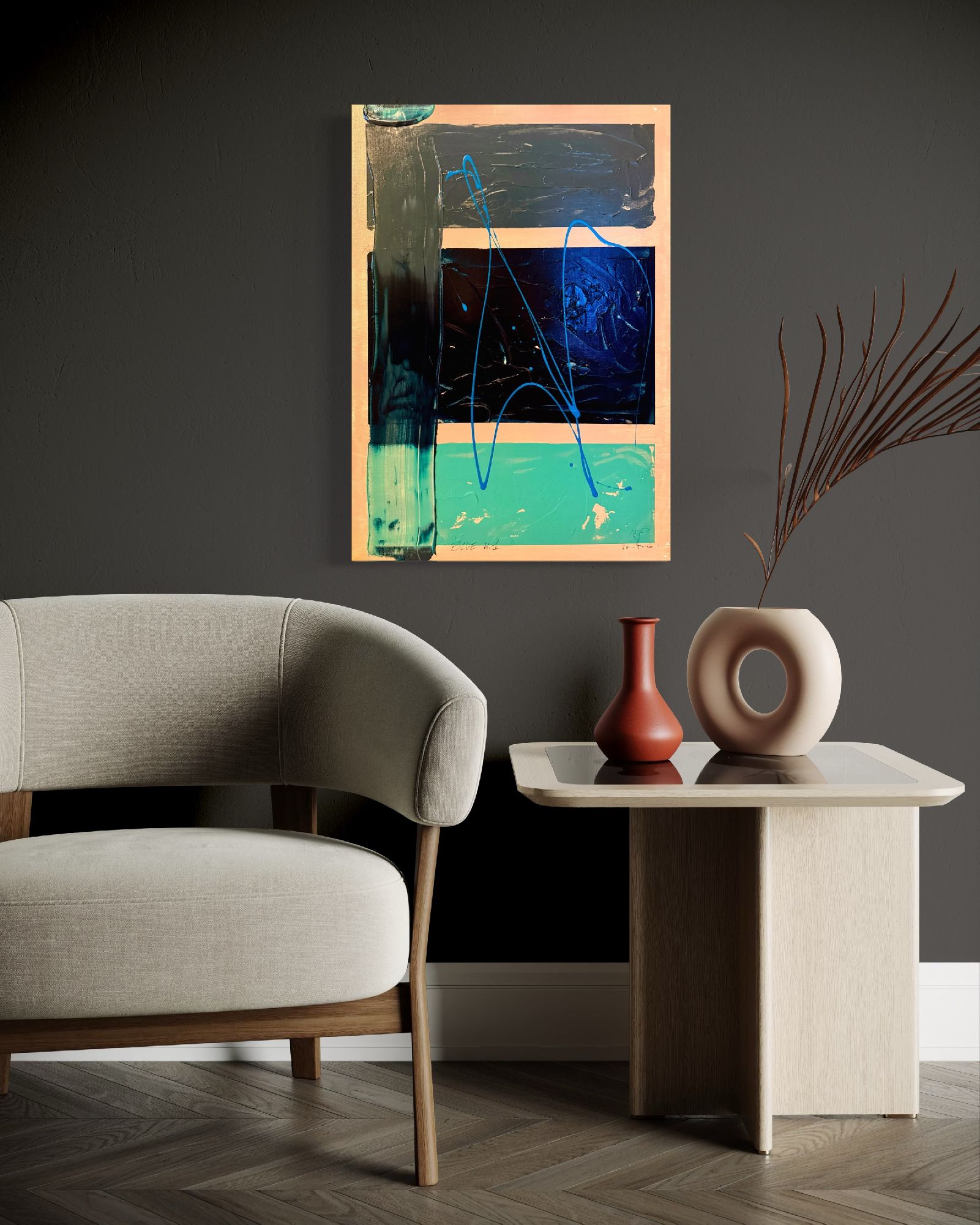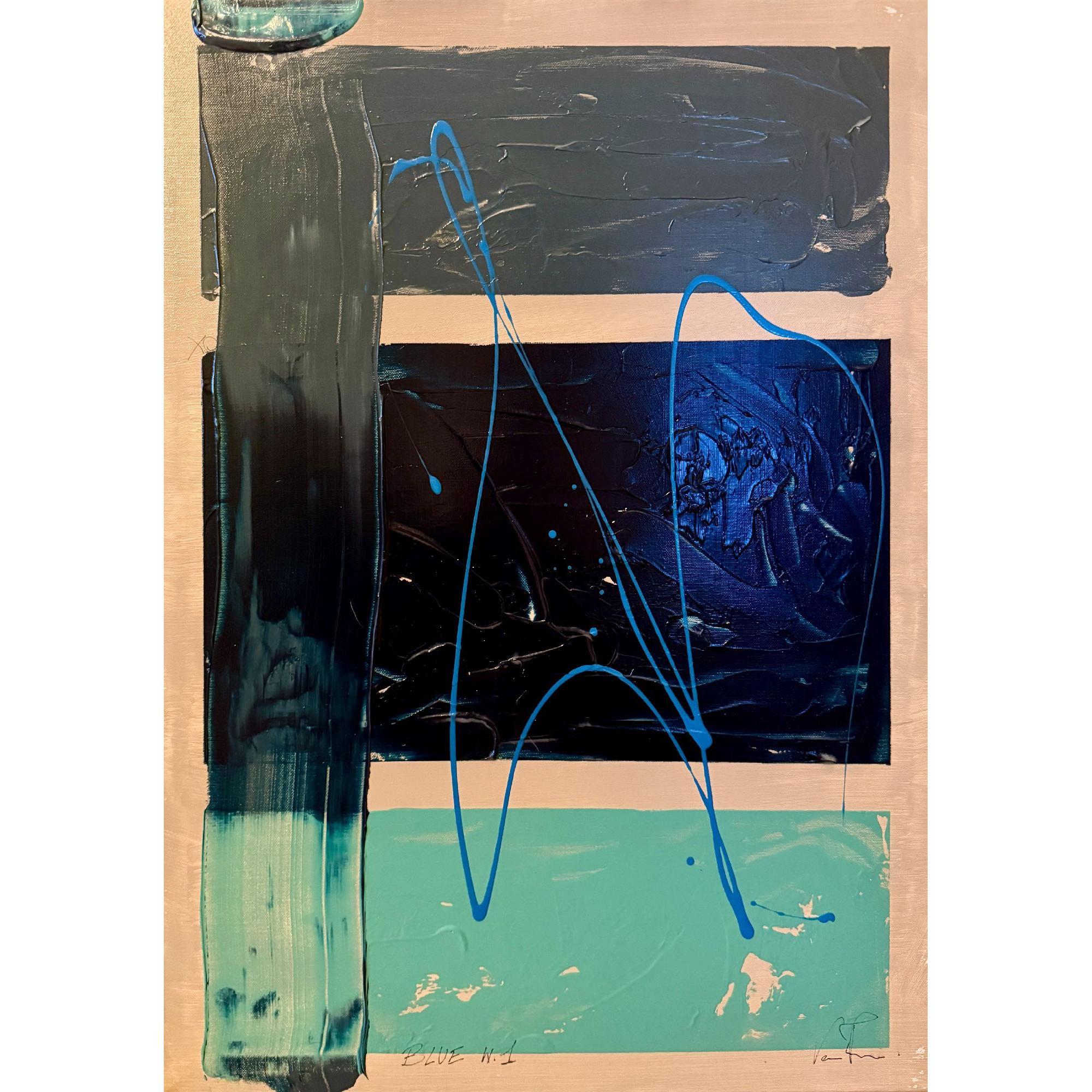 "Blue N.1" è un'opera che mette in scena il conflitto e la coesistenza tra struttura e libertà, tra quiete e turbolenza. Il blu, protagonista assoluto, diventa veicolo di introspezione e profondità emotiva. Un lavoro che non racconta, ma evoca, e per questo resta aperto all’interpretazione personale di chi lo osserva.