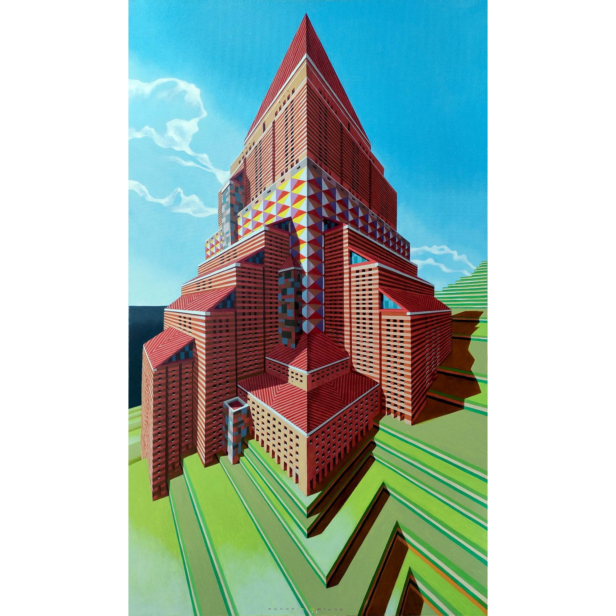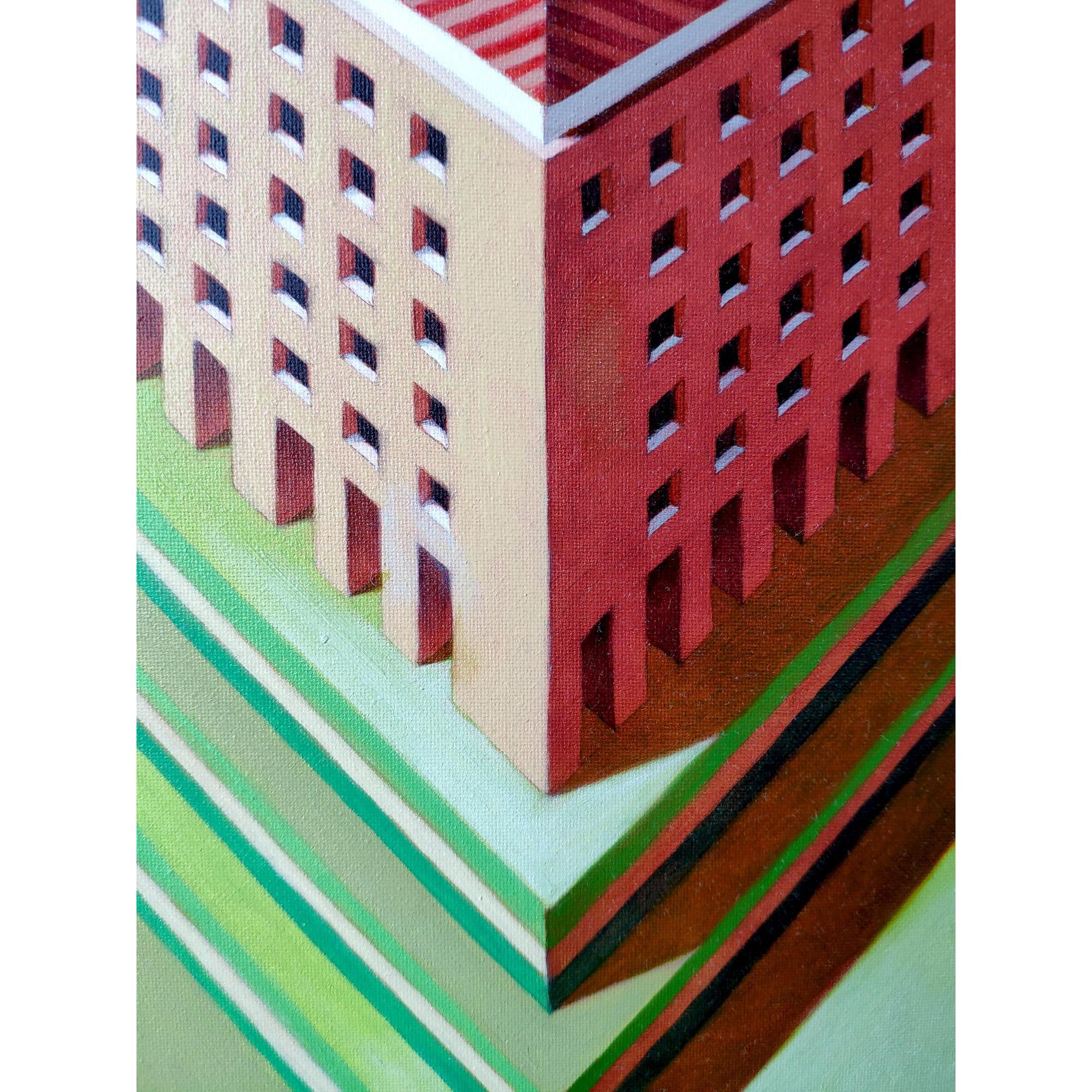 Mi piace creare mondi immaginari. Usando dei software di modellazione invento delle realtà virtuali semplificate, probabilmente frutto di ricordi di viaggi ed esperienze passate. Scelgo i tipi di edifici, li dispongo su un terreno fittizio, assegno i colori alle varie parti, le luci, gli elementi del paesaggio. E poi scelgo un punto di vista e ritraggo questo luogo di fantasia. La pittura di paesaggio tradizionale deve fare i conti con le variabili atmosferiche, con la mutevolezza della luce naturale. Qui al contrario, non solo tutto è statico, ma posso variare i vari elementi a mio piacimento: aggiungere o togliere pezzi, spostare qualche cosa, provare gli effetti delle ombre a seconda del movimento delle luci. Ma si tratta di una differenza piccola, ed anche la differenza tra realtà “reale” e realtà virtuale è ormai piccola: quest’ultima è diventata parte della nostra vita quotidiana, ha modificato la nostra percezione della realtà, in qualche modo è diventata essa stessa reale.