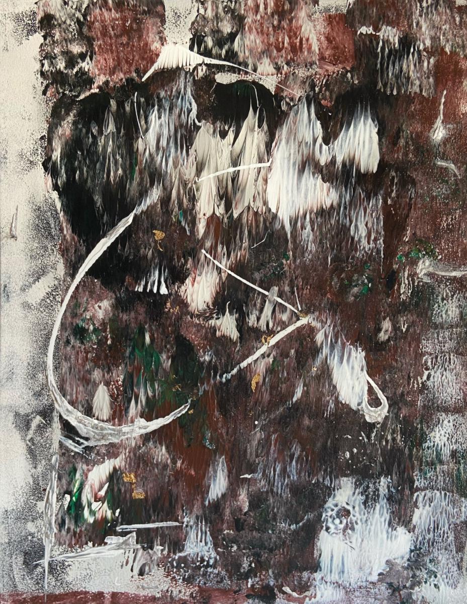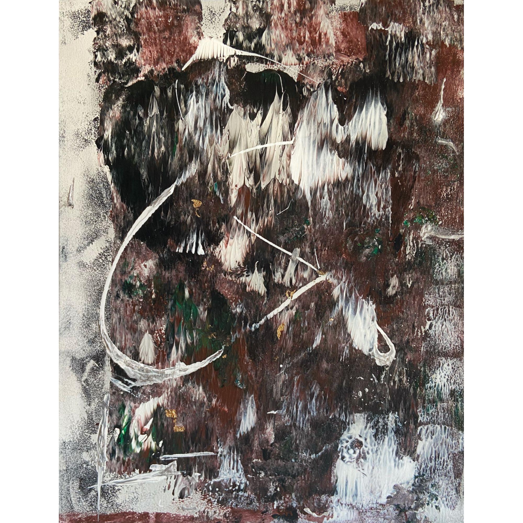 "Breath" cattura la delicata interazione tra presenza e dissoluzione. Le linee si innalzano, fluiscono e svaniscono, creando un senso di movimento e immobilità allo stesso tempo. Le tonalità di bordeaux intenso, bianco e argento evocano forza e leggerezza, invitando l'osservatore a un momento di pausa e riflessione.
