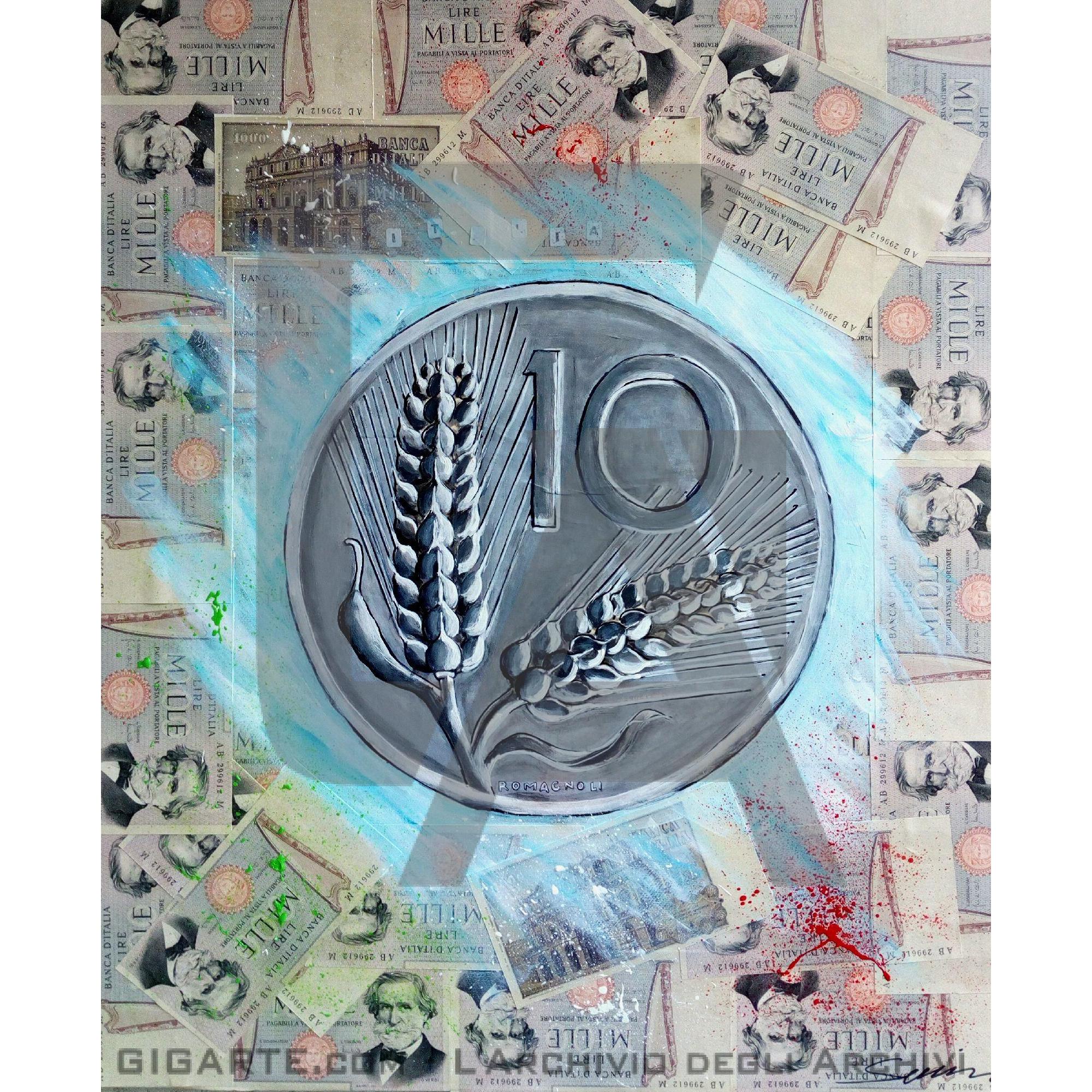 - Tecnica: acrilico e decoupage di banconote
