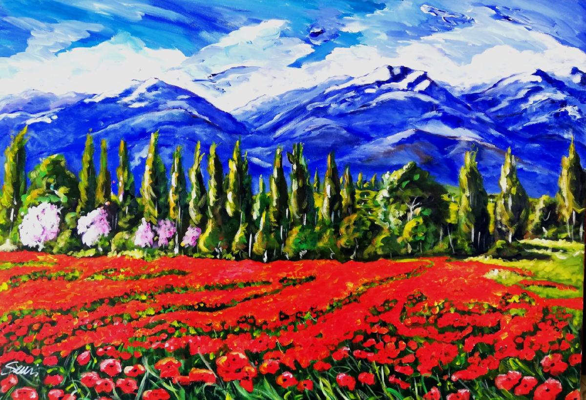 Si certifica che l'artista Francesco Senise, Pittore Arbëresh martedì 14 maggio 2019 ha archiviato la foto dell'opera GA148214 dal titolo "1000 papaveri rossi"