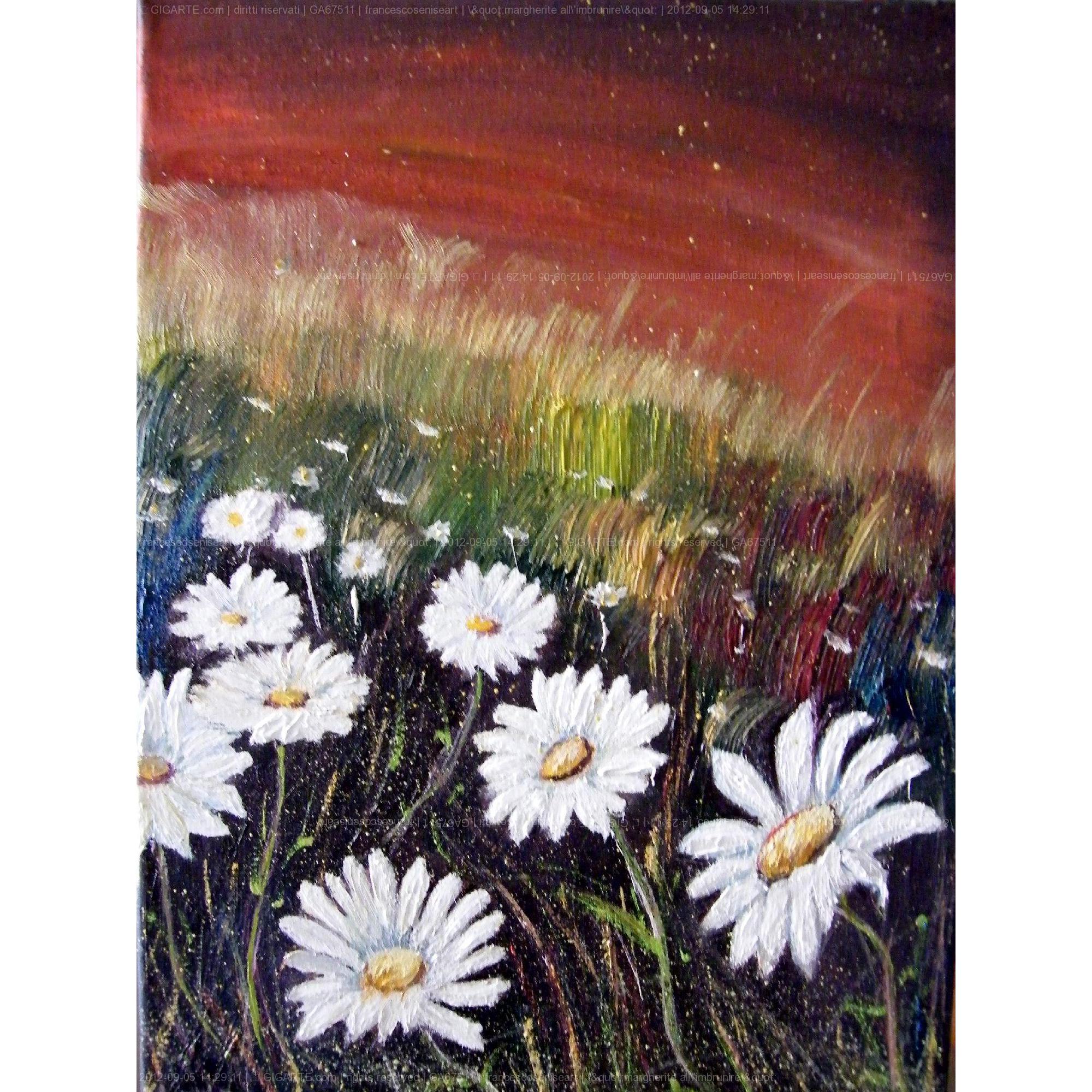 Si certifica che l'artista Francesco Senise, Pittore Arbëresh mercoledì 5 settembre 2012 ha archiviato la foto dell'opera GA67511 dal titolo ""margherite all'imbrunire""
