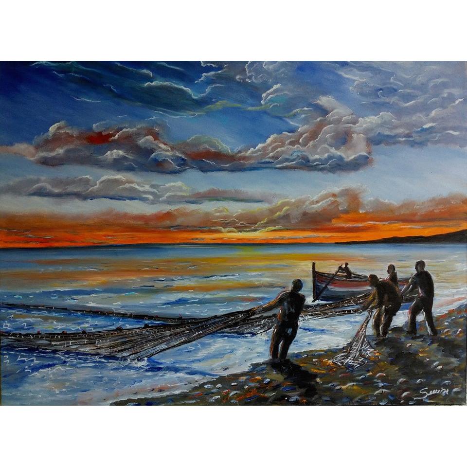 Si certifica che l'artista Francesco Senise, Pittore Arbëresh domenica 28 settembre 2014 ha archiviato la foto dell'opera GA90417 dal titolo "PESCATORI ALL'ALBA A SCHIAVONEA"