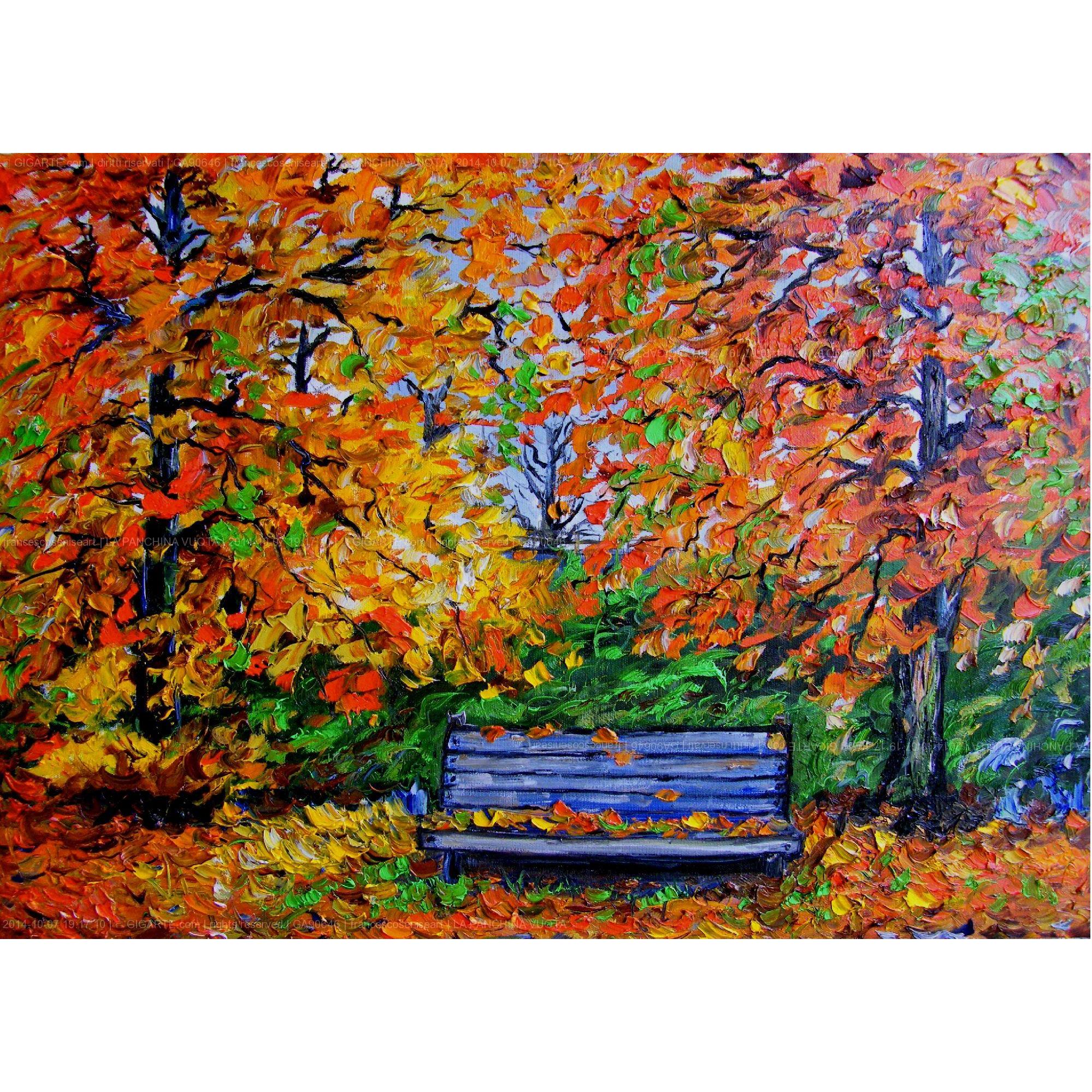 Si certifica che l'artista Francesco Senise, Pittore Arbëresh martedì 7 ottobre 2014 ha archiviato la foto dell'opera GA90646 dal titolo "LA PANCHINA VUOTA"