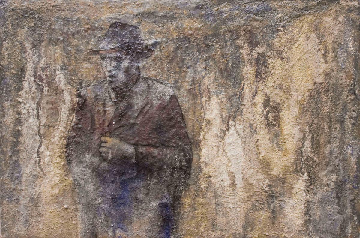 Innanzitutto sabato 29 aprile alle 11 del mattino apre la sua mostra personale intitolata “Una singolare pluralità” allestita in entrambi gli spazi in cui si articola la Galleria di Maria Novella dei Carraresi, ovvero lo Spazio Campiello e lo Spazio Rio Terà: una trentina di opere in tutto, molte delle quali di grande formato, che bene esemplificano la ricerca inquieta e stratificata, ricca di contaminazioni svolta dall’artista lombardo nel campo delle arti visive, tra figurazione, action painting, arte povera e new dada: una “pittura” che spesso tende alla scultura, al bassorilievo, caratterizzata dall’uso di pagine di libri antichi, oggetti, strumenti del mondo contadino (catene, cerchi di vecchie botti), cemento e pigmenti, in una “fusion” che contamina la memoria “alta” della letteratura classica con quella “bassa” del mondo contadino dei nostri nonni, attraverso modalità di combinazione e straniamento di matrice post-moderna, ma senza dimenticare la fascinazione della “bella pittura”, attraverso velature e una tecnica che ricorda quella dell’ affresco. E sempre con una forte carica “teatrale”.
