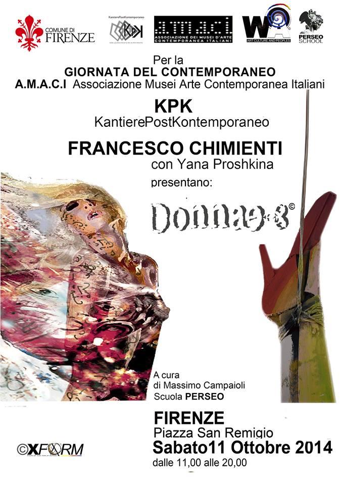 MAURO GAZZARA come componente del gruppo KPK Firenze , parteciperà alla Giornata del Contemporaneo A.M.A.C.I Associazione dei Musei d'Arte Contemporanea Italiani- all'evento "DONNAE" Piazza San Remigio Firenze - Sabato 11 Ottobre 2014 dalle 11,00 alle 20,00