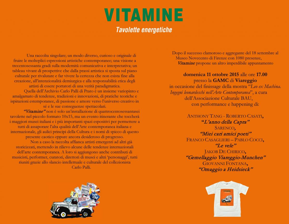 Mauro Gazzara partecipa "VITAMINE Tavolette Energetiche" presentszione collezione Carlo Palli GAMC Viareggio Palazzo delle Muse P.zza Mazzini 22
