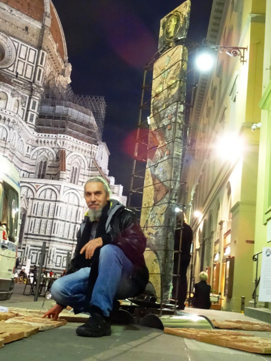 “Humenhir Fiorenza, Sommersi Frammenti” installazione..davanti al Campanile di Giotto, sotto le tegole a scaglia in Cotto Impruneta della cupola del Brunelleschi, vicino alle porte del Ghiberti del Battistero,
