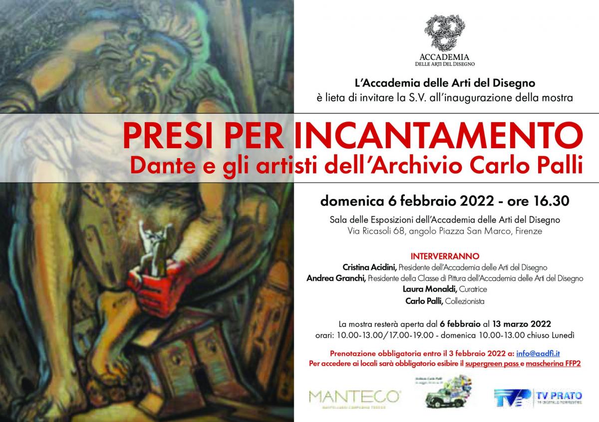 Mauro Gazzara sarà presente con l opera - Lasciate ogni speranza voi ch" entrate - alla mostra presso la "Accademia delle Arti del Disegno " di Firenze Il 6 febbraio 2022 si inaugura nei locali della sala delle Esposizioni dell’Accademia delle Arti del Disegno la mostra “Presi per incantamento. Dante e gli artisti della Collezione Carlo Palli” curata da Laura Monaldi e realizzata dall’omonimo Archivio con l’Accademia delle Arti del Disegno. 86 opere d’arte provenienti dalla Collezione privata di Carlo Palli vengono presentate come bilancio antologico del rapporto gli artisti contemporanei e l’Alighieri. I numerosi linguaggi figurativi, pittura, scultura, fotografia, tecniche miste di ogni genere testimoniano l’ “incantamento” (dal secondo verso del 52° sonetto delle Rime) che Dante suscita negli artisti e nei collezionisti anche al giorno d’oggi e di cui, dopo molti approfondimenti monografici, si vuole offrire una più sistematica sintesi. Scrive Cristina Acidini, Presidente dell’Accademia delle Arti del Disegno e sostenitrice di questo grande progetto: “L'intreccio di parole dalla potente suggestione iconografica nell'opera di Dante Alighieri, così come ha dato per secoli materia agli illustratori più diversi, si cala nella molteplicità delle espressioni visive contemporanee con risultati spesso inattesi, talora sorprendenti. C'è spazio per la forma e per l'informale, per la figura e per l'astrazione, per il naturale e il concettuale”. Una galleria di artiste e di artisti che al termine dell’esposizione rimarranno in dono alla collezione dell’Accademia delle Arti del Disegno il cui archivio, sempre più orientato a conservare e valorizzare le opere contemporanee, è aperto alla città di Firenze e al mondo degli studiosi e degli amanti dell’arte anche grazie alla generosità di Carlo Palli, mercante d’arte, collezionista, appassionato conoscitore a cui l’Accademia delle Arti del Disegno, fin dal 2019, ha riconosciuto la straordinarietà della sua esperienza conferendoli il titolo di Accademico d’onore. Il Dante Contemporaneo della Collezione Palli sarà visibile ogni giorno dal martedì al sabato dall 10 alle 13 e dalle 17 alle 19, la domenica delle 10 alle 13. Lunedì chiuso. Media partener: TvPrato