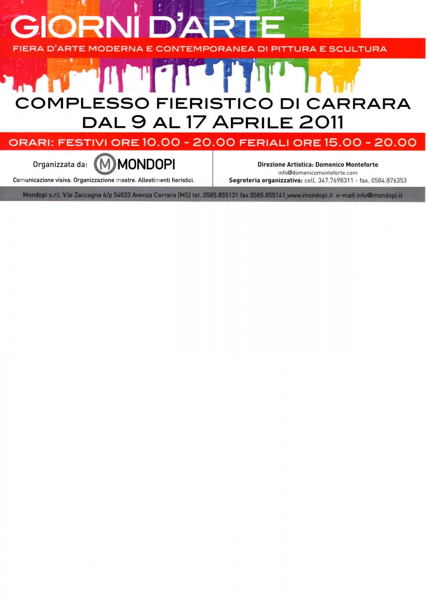Mauro Gazzara sarà presente alla fiera "GIORNI D'ARTE" Complesso fieristico di Carrara dal 09 al 17 Aprile 2011 STAND n.50 Galleria Messina.