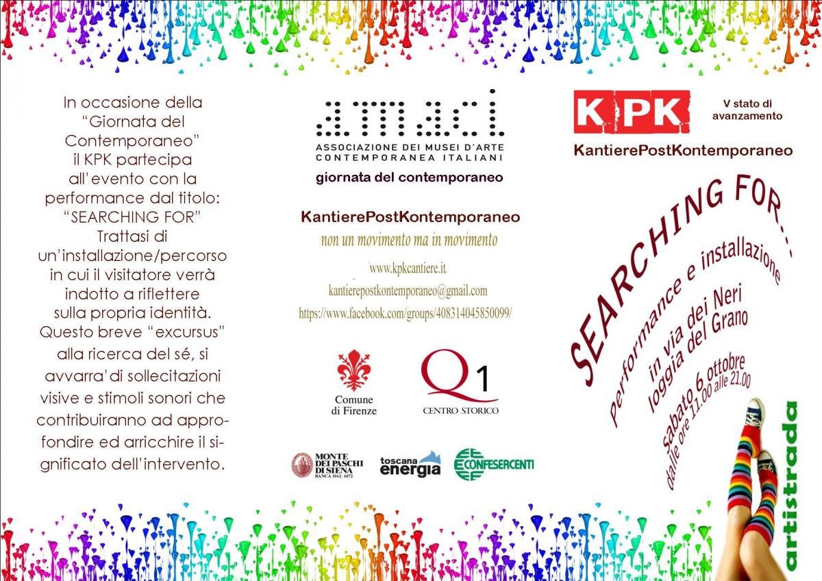 Mauro Gazzara come componente del KPK è presente all'evento artistico SEARCHING FOR... Performance e Installazione a Firenze Loggia del Grano via dei Neri Sabato 6 Ottobre 2012 in occasione della Giornata del Contemporaneo.