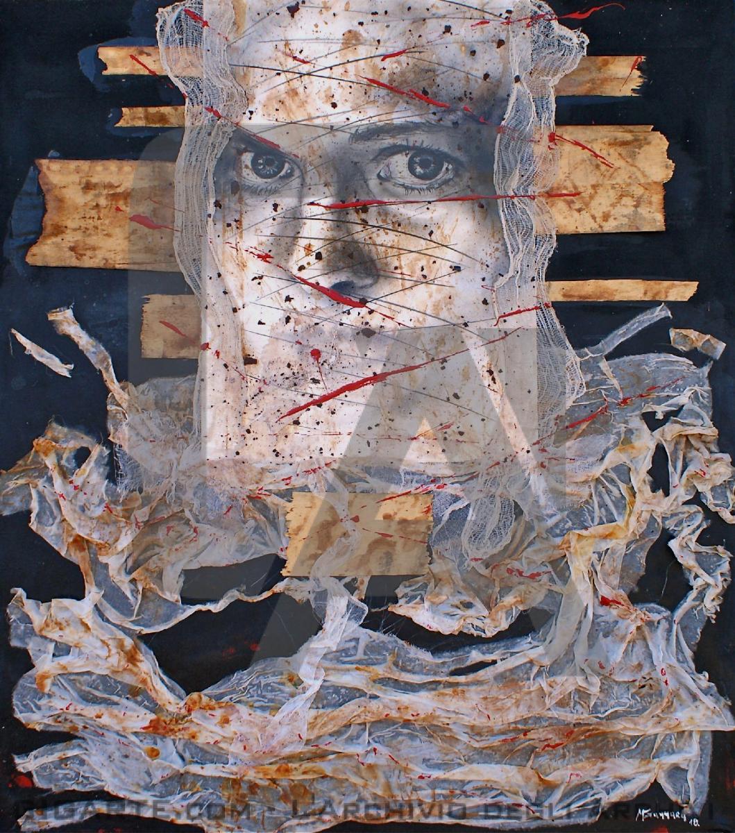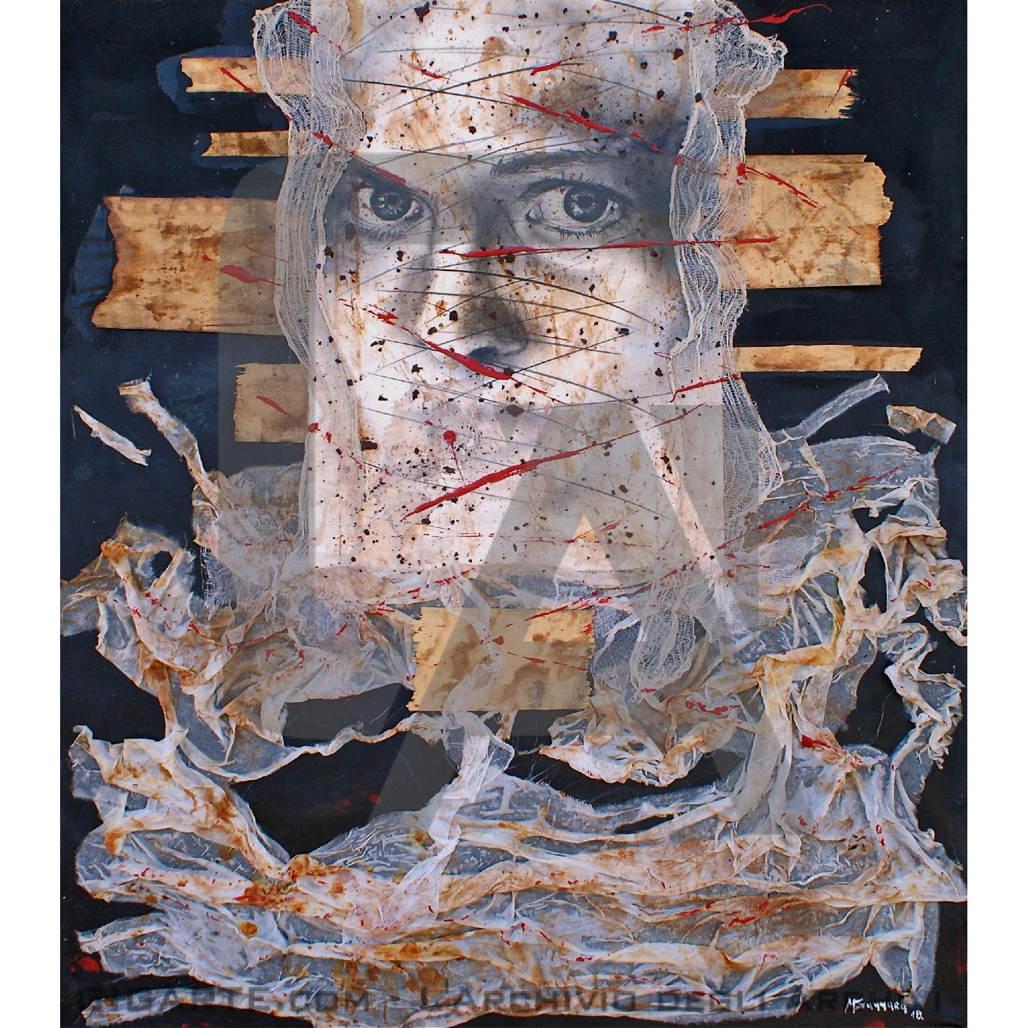 Opera eseguita in tecnica mista su tela materica e con ossidazioni
