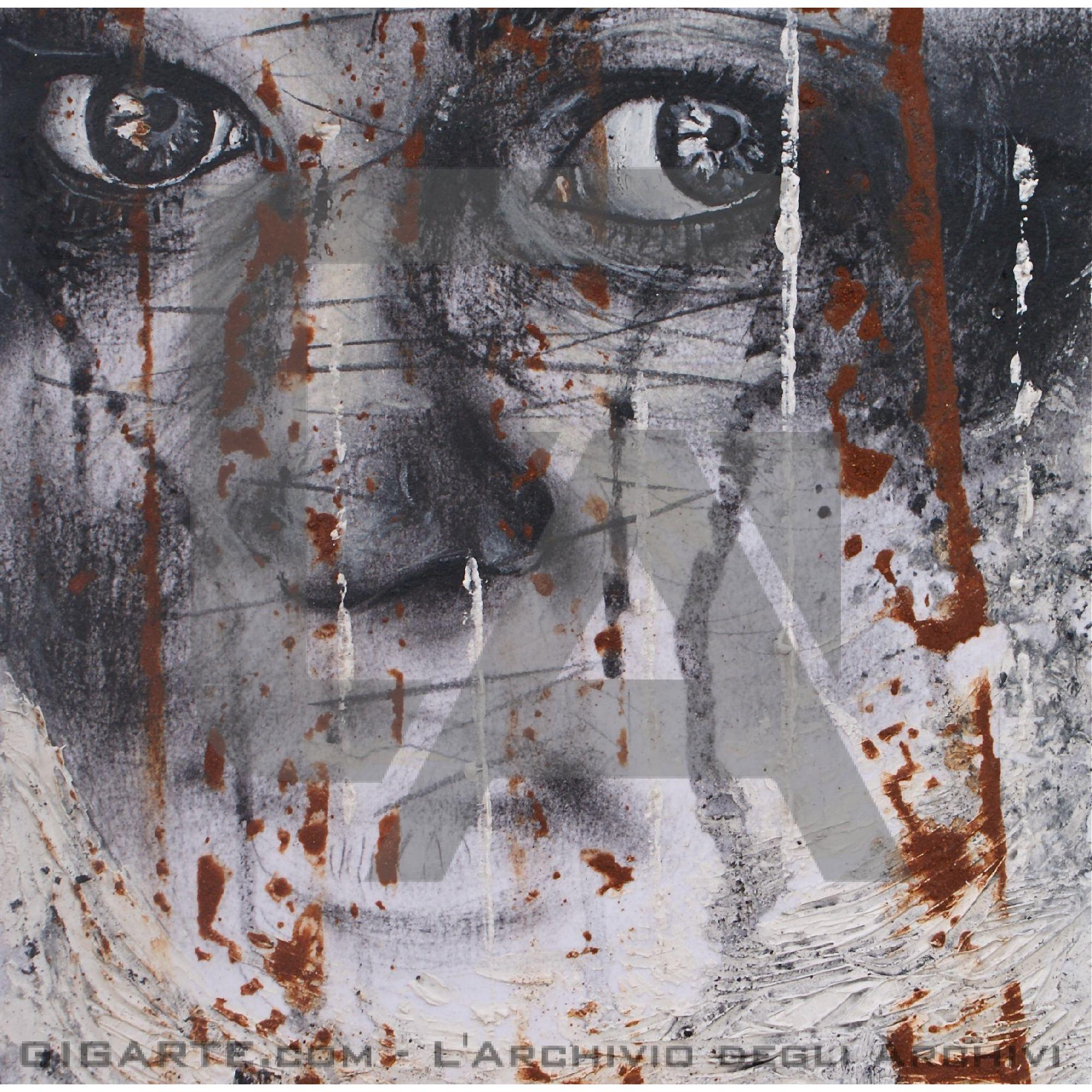 Opera eseguita in tecnica mista su carta da stampa con ossidazioni