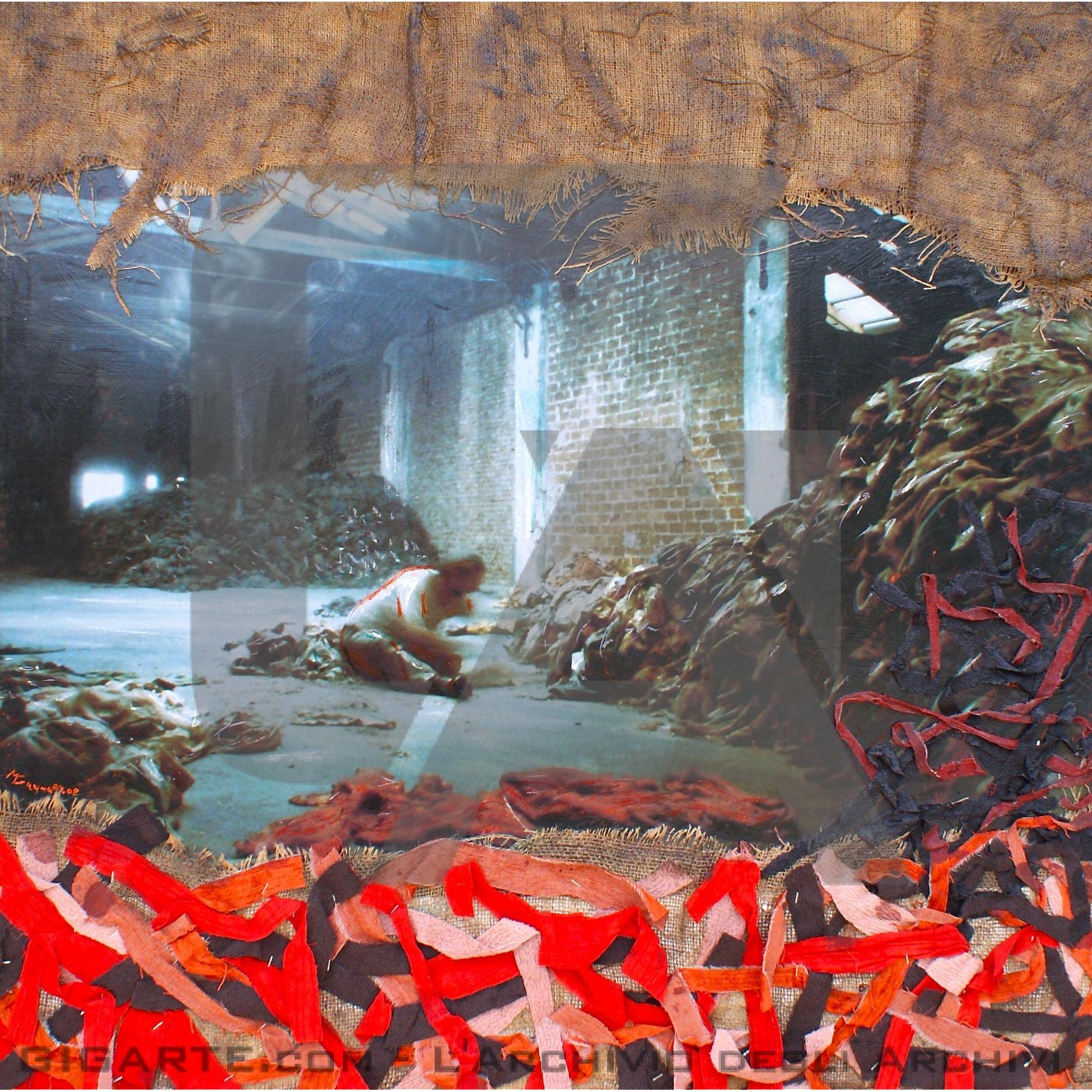 opera eseguita in tecnica mista su tela con applicazioni materiche