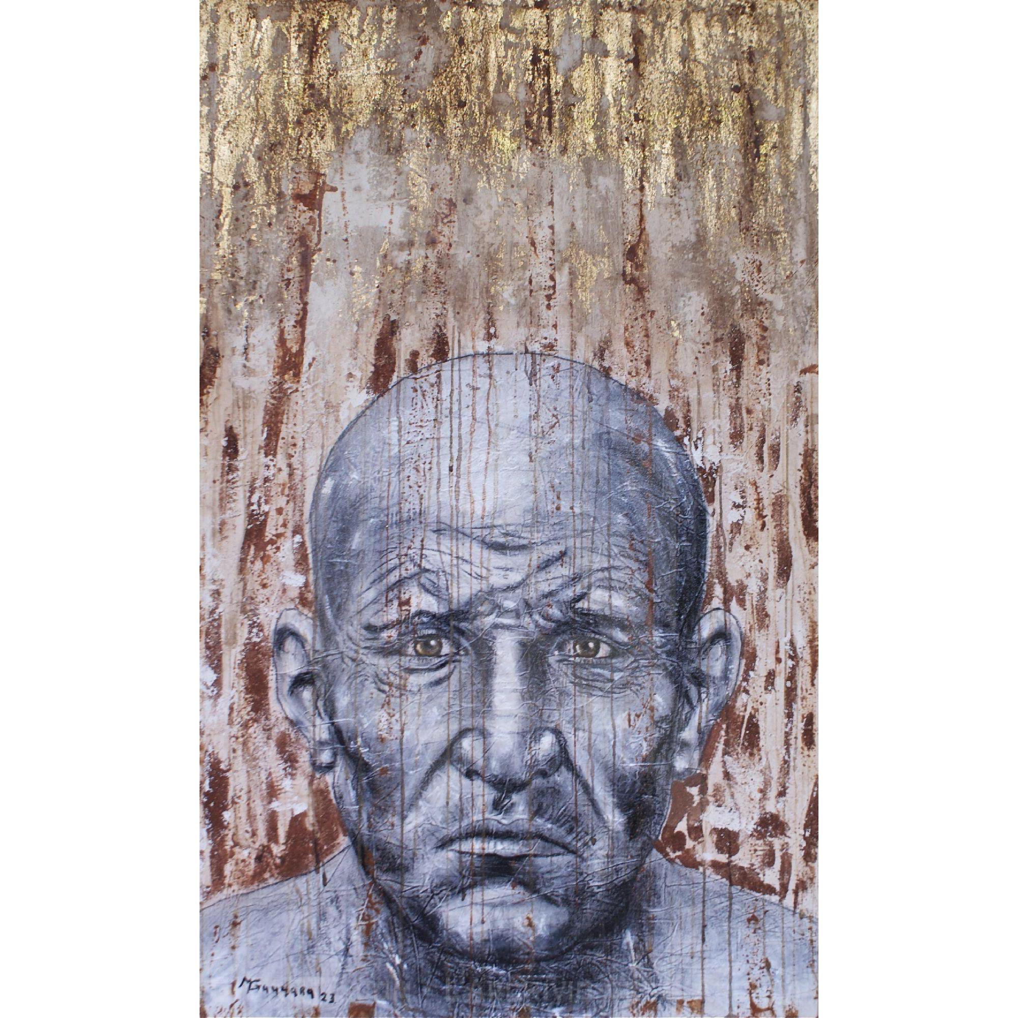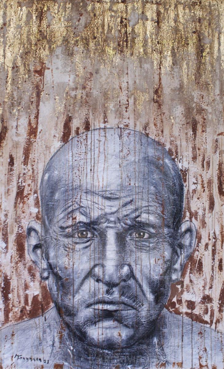 Opera eseguita in tecnica mista su tela con terre e foglia oro