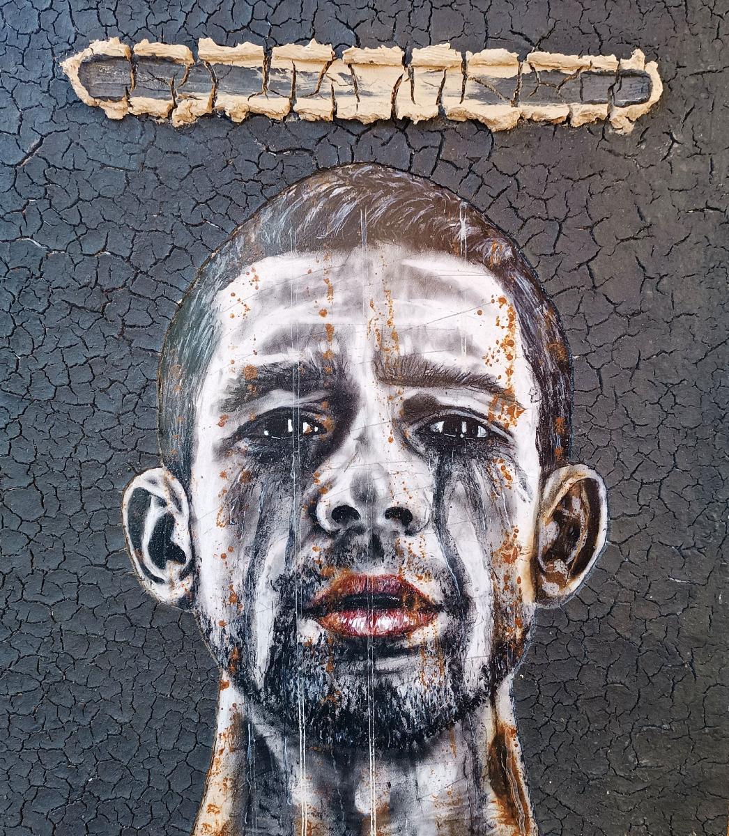 Opera eseguita in tecnica mista su tavola miscela di terre con pigmenti colorati - colle - carboncino - colori acrilici - ossidazioni