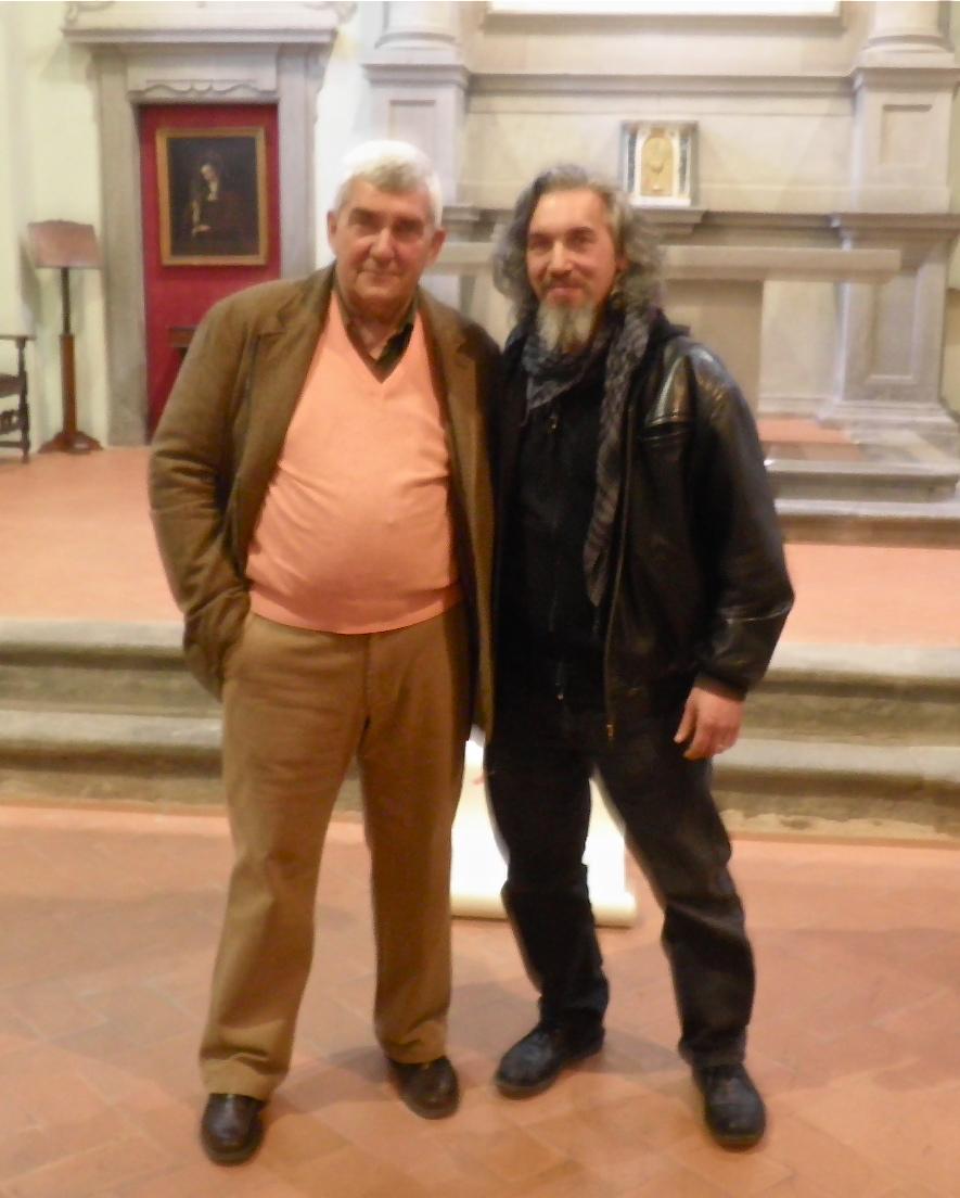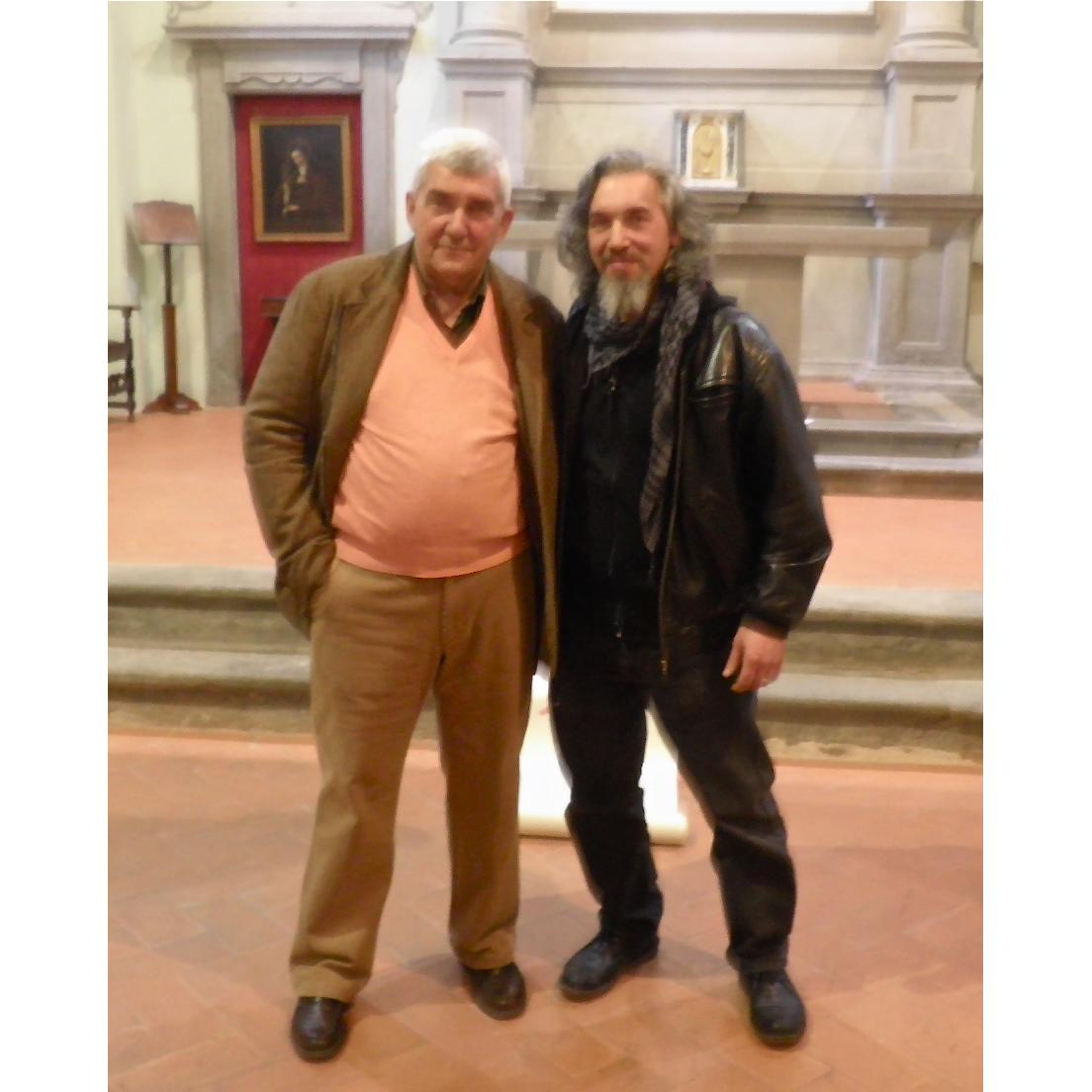 Mauro Gazzara con il critico d'Arte Alberto Gavazzeni in occasione della mostra personale" Angeli" Chiesa di San Rocco Prato 2011
