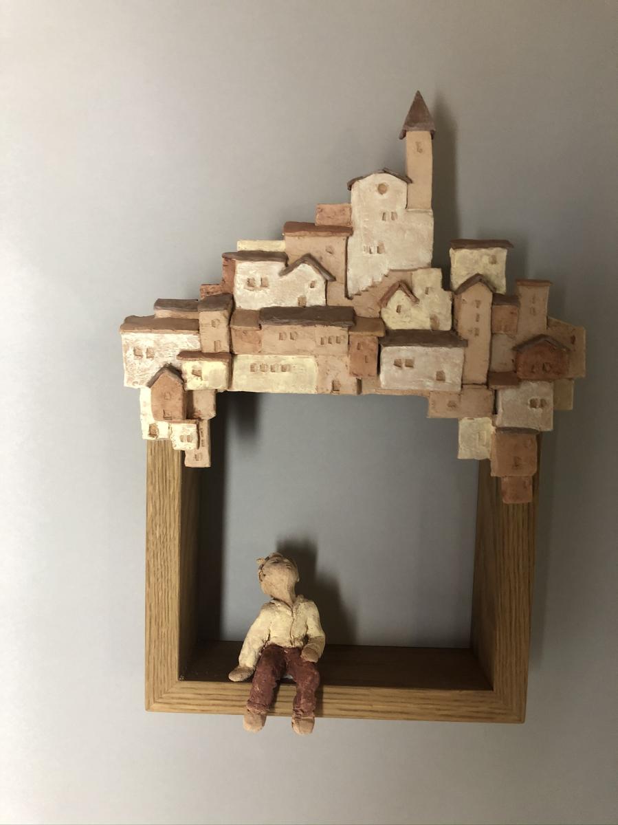 Realizzato in creta policroma e ocre di Roussillon. Cornice in legno
