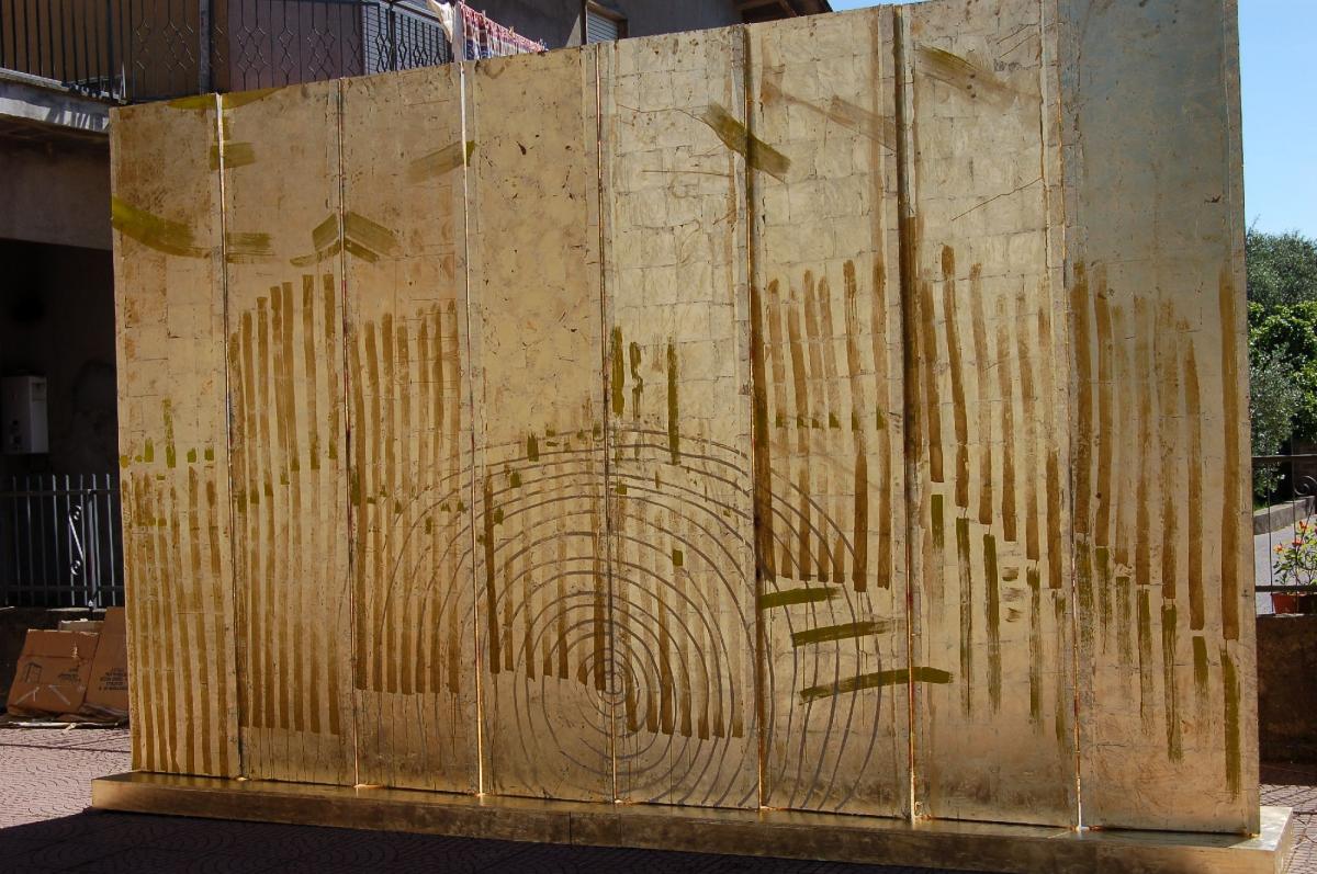 ...foglia d' oro su mediodens e pittuta acrilica, multistratofen, ceramica, pigmenti naturali, scagl, 2006