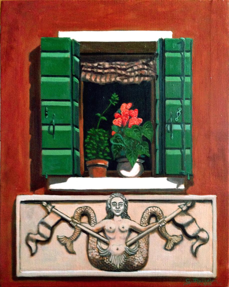 GA60423 - Finestra della casa rossa a Lipari olio tela 60x50 -