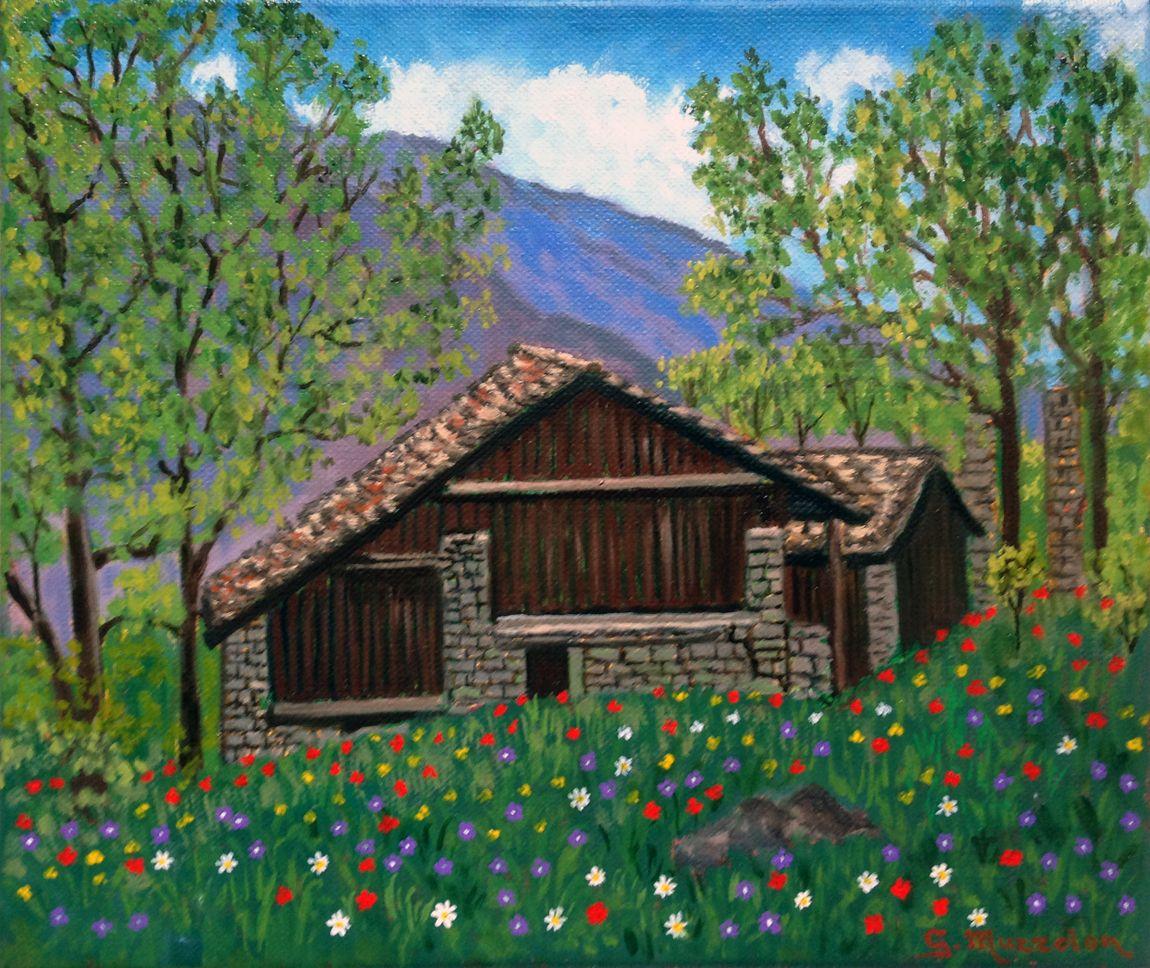 GA115531 - "Villa valdostana sulla Strada regionale Roisan " olio su tela, cm. 50 x 70 -