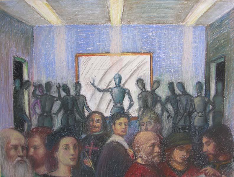 Una scena di un interno di una Accademia di Belle arti,dove la modella non posa perchè non la guarda nessuno.... gli allievi sono ..impegnati in un "Fai quello che vuoi"
