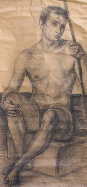 Copia dal vivo a carboncino di un modello seduto