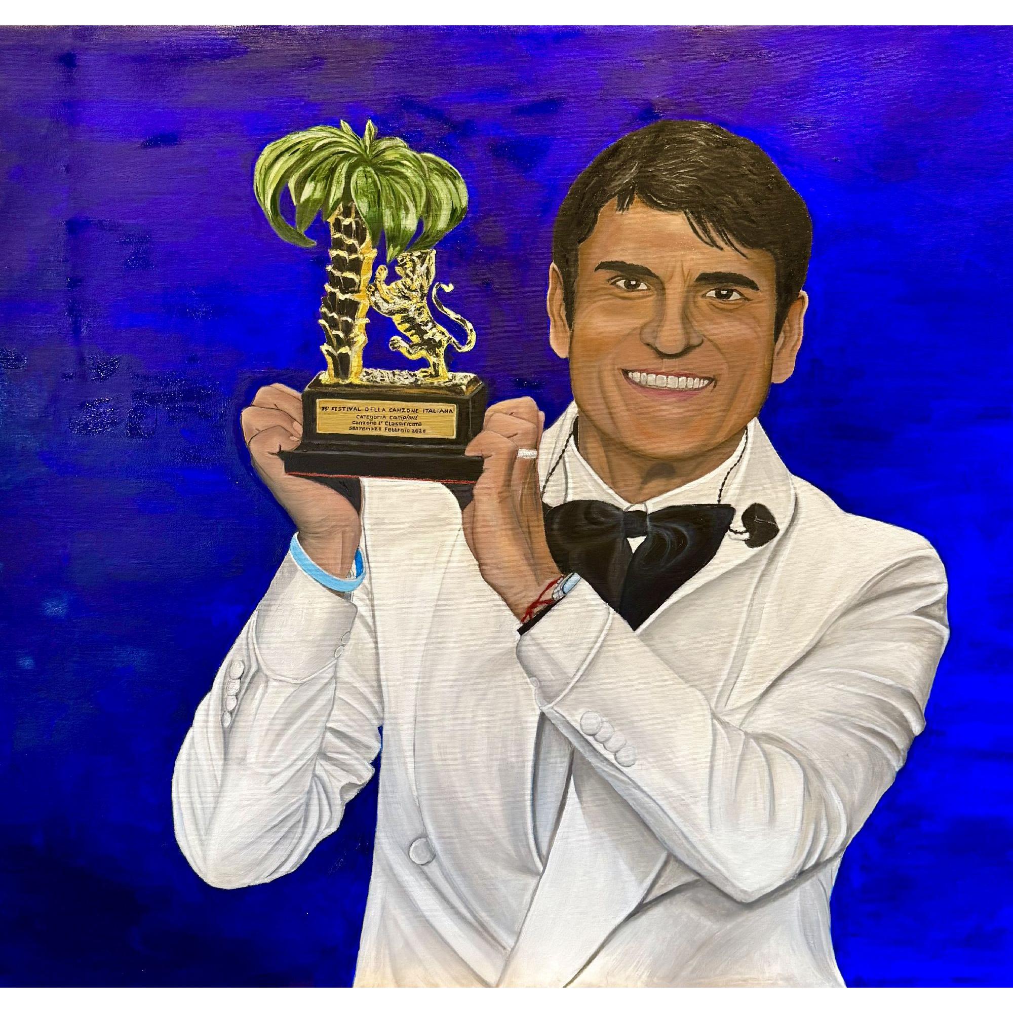 In questo dipinto ho voluto catturare l'emozione, la passione e il trionfo di un artista che ha portato il cuore di Napoli sul tetto d'Italia. Un omaggio pittorico che unisce musica e arte contemporanea. al Vincitore di Sanremo 2026 Sal Da Vinci .